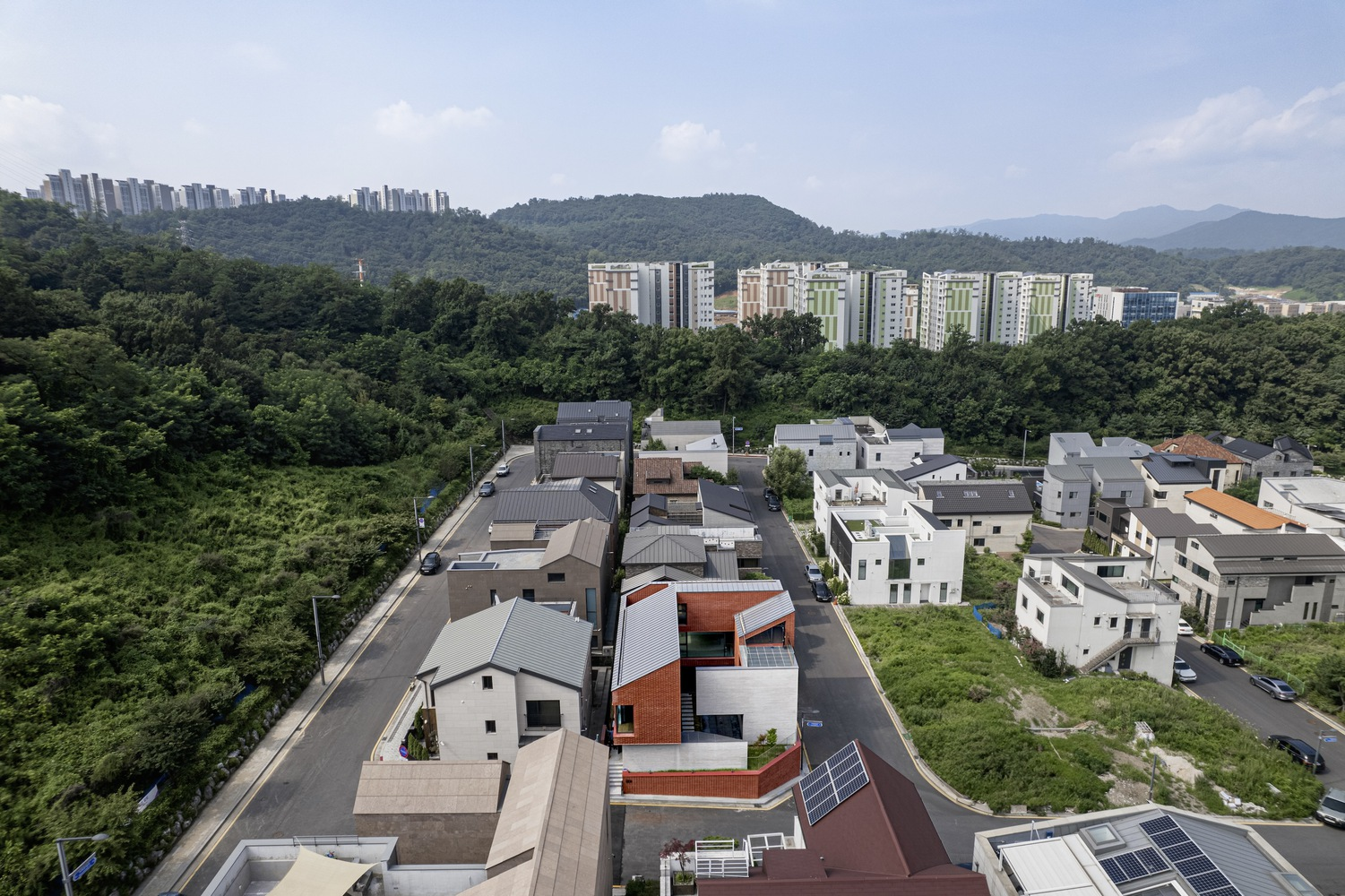Exploring Kode Architects' Upper Wall, Low Wall Residence, a privacy-centric home design that merges traditional and modern elements in urban Seongnam-si, South Korea.