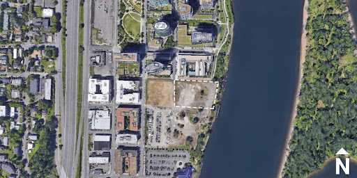 The site is in the neighbourhood of the South Waterfront of South Portland. It can be accessed by Lane street and Bond avenue and is located beside the Willamette River. The land around the site is used for on-ground parking. The neighbourhood is mixed-use with high-rise residential, commercial (retail) buildings, dining outlets and parks in the vicinity.