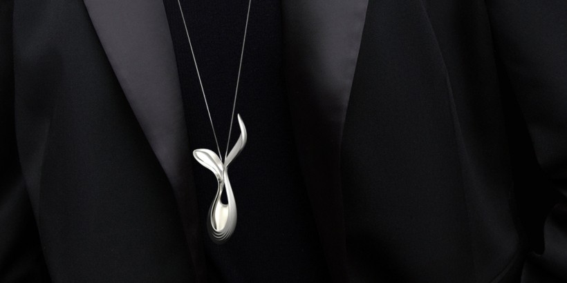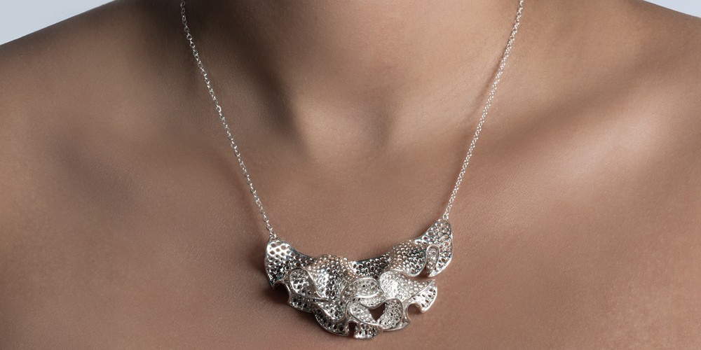 Fluid, biomorphic micro-sculpture with reflective parametric form - Aquatic Pendant Necklace by FLOA DESIGN