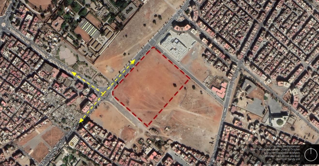 Located at the junction ( of Avenue Mohammed V and Avenue Moulay Rachid), one of the major thoroughfares of the city of Rabat, the site is chosen due primarily due to it being easily accessible from several dense neighbourhoods, and also due to its closeness to several public amenities such as public parks, schools, cafes, pharmacies and multiple other commercial establishments. In choosing the site making sure that it would mean that the seniors would get an opportunity to be an active part of the community.