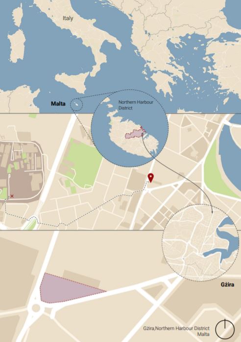 At a distance of 800 m from the University of Malta, the site conveniently sits at a junction, it's visible front, accessibility (to the nearby university town and the well frequented seafront) and the demographics of its neighbourhood, its most important asset. Adjacent to it the old Empire Stadium, Gżira (which is no longer in use, having been replaced by the Ta' Qali National Stadium).