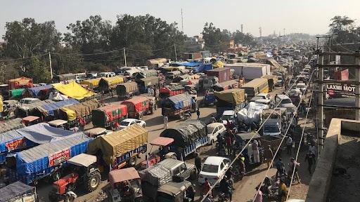 Fig: 2 - The Farmers' Protest occupation sites along Singhu Border near Delhi, India. (Credit: nationalheraldindia.com)