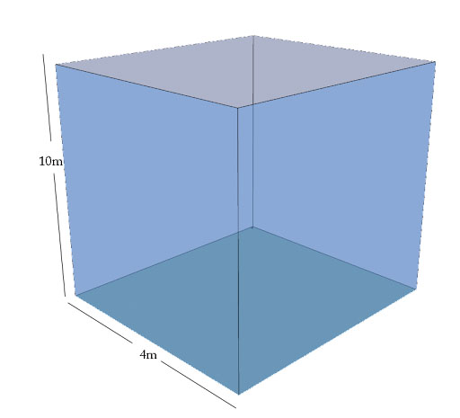 The dimensions of the space are 4m × 4m  (l x b) with a minimum height of 6 meters and maximum height limitations being 10 meters.