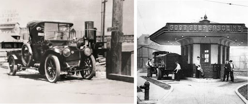 Fig: 1 - The first "drive-in" station, Gulf Refining Company, opened in Pittsburgh in 1913.