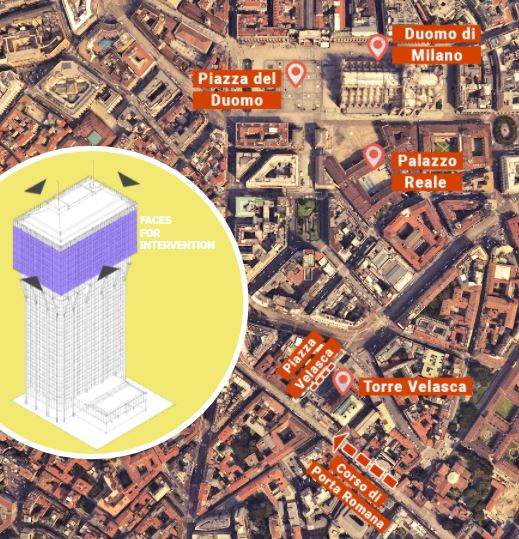 Img 4: A representative image of the area of intervention on the facade of the Torra Velasco in Milan, Italy.