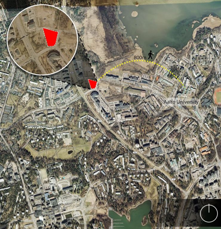 The site is located within a km distance of Aalto university. The placement of the site amidst university land and near residential area plays a strategic advantage regarding its visibility and accessibility.