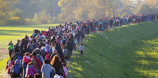 Fig: 1 - An image showing a group of refugees migrating from one place to the next.