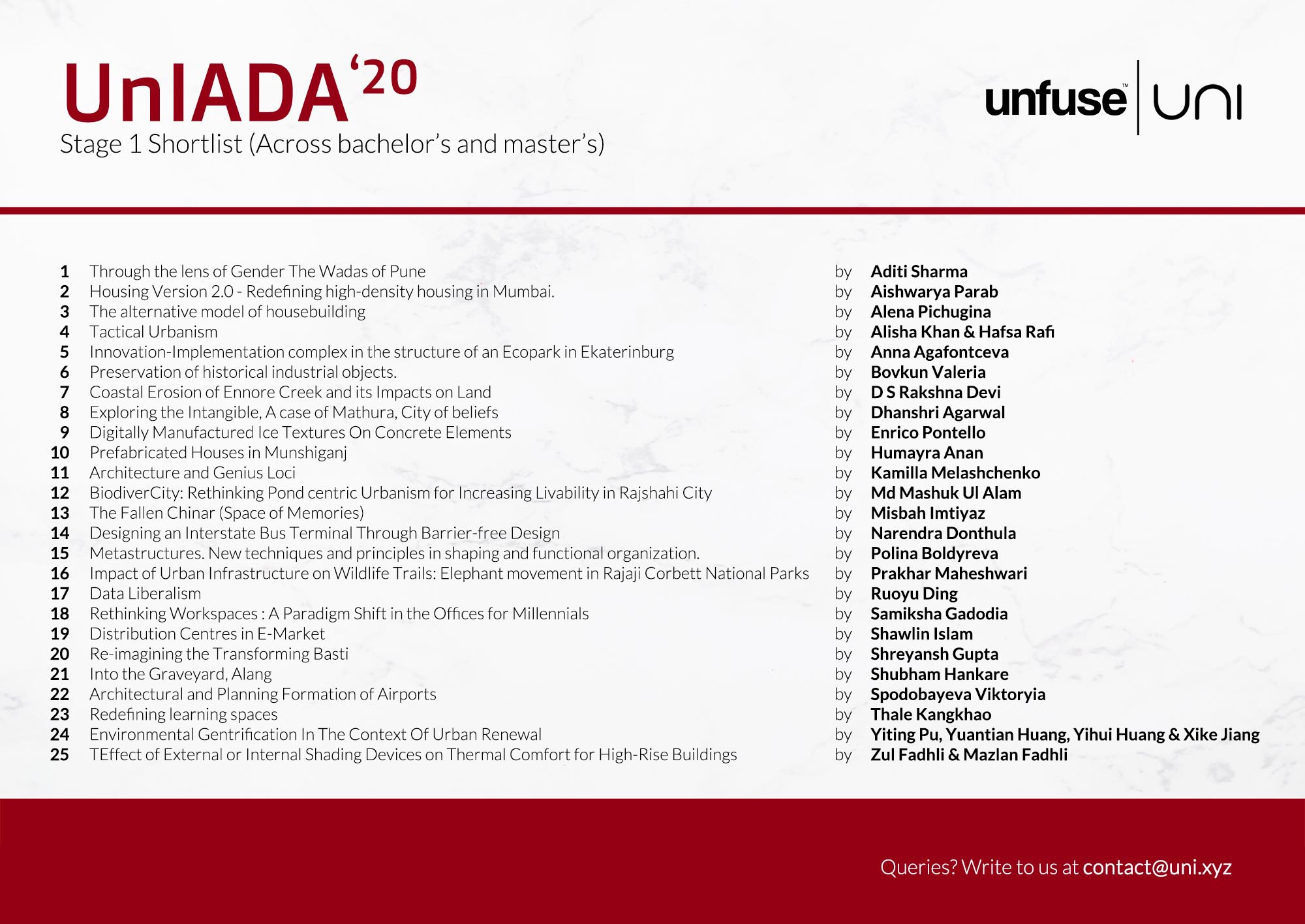 The shortlist for Unfuse International Architecture Dissertation Awards '20 are:
