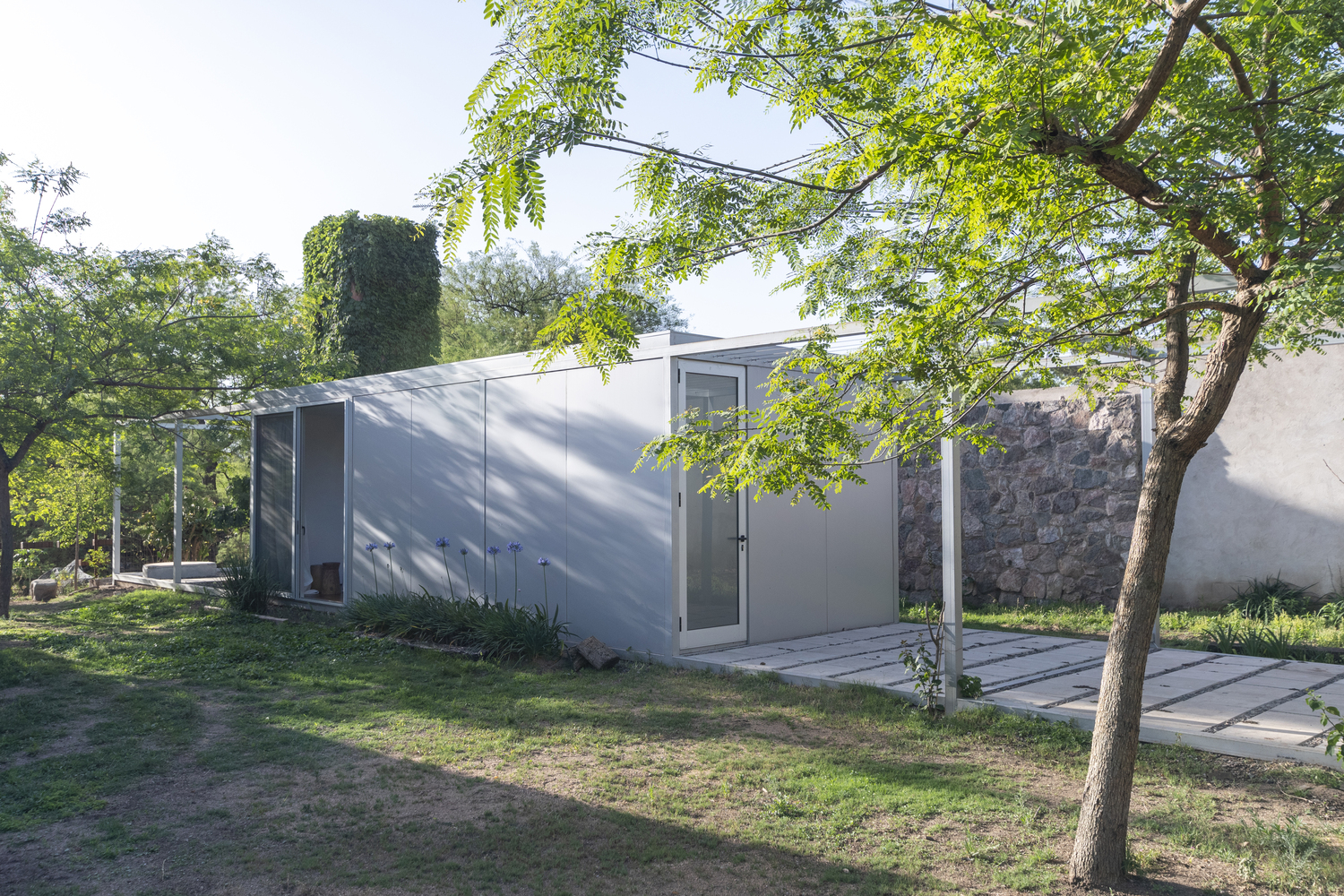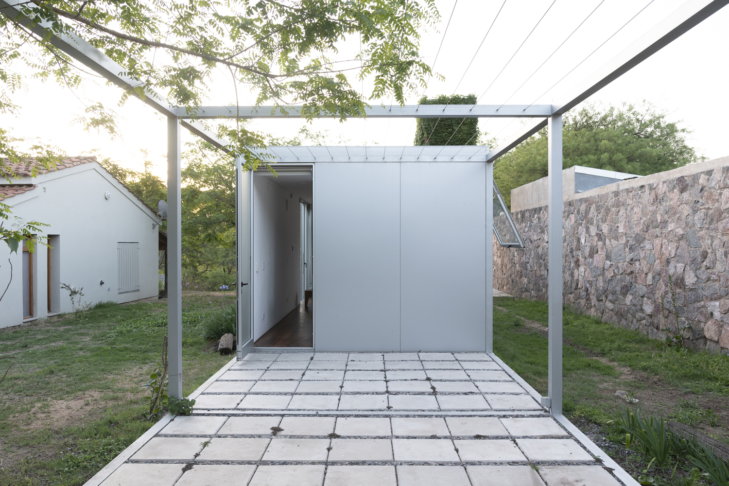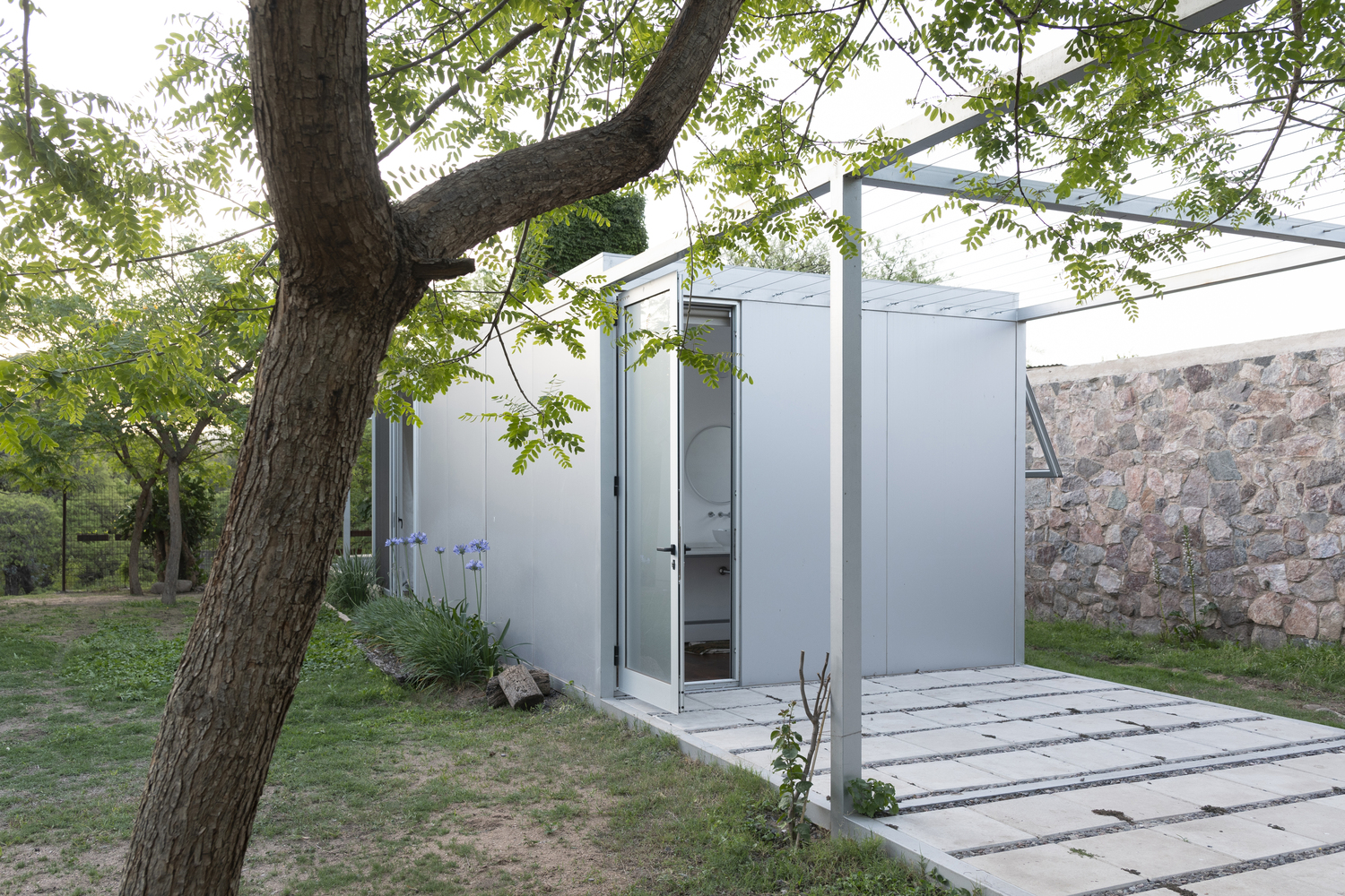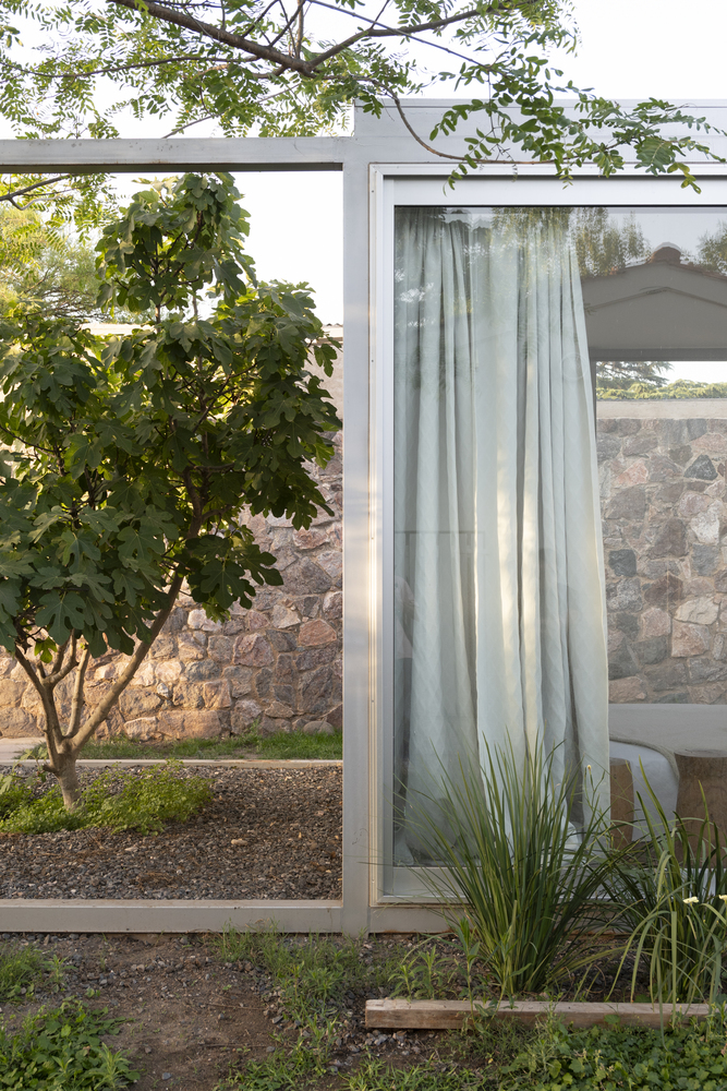 One of the most distinctive aspects of the 3x3x3 Pavilion is its seamless integration with both built and natural surroundings. The pavilion is carefully positioned to embrace a nearby fig tree and existing stone boundary wall, creating a harmonious relationship between the structure and its environment. An additional module, identical in form but empty, serves as a platform for outdoor activities, offering a frame for nature while encouraging interaction with the surrounding landscape.