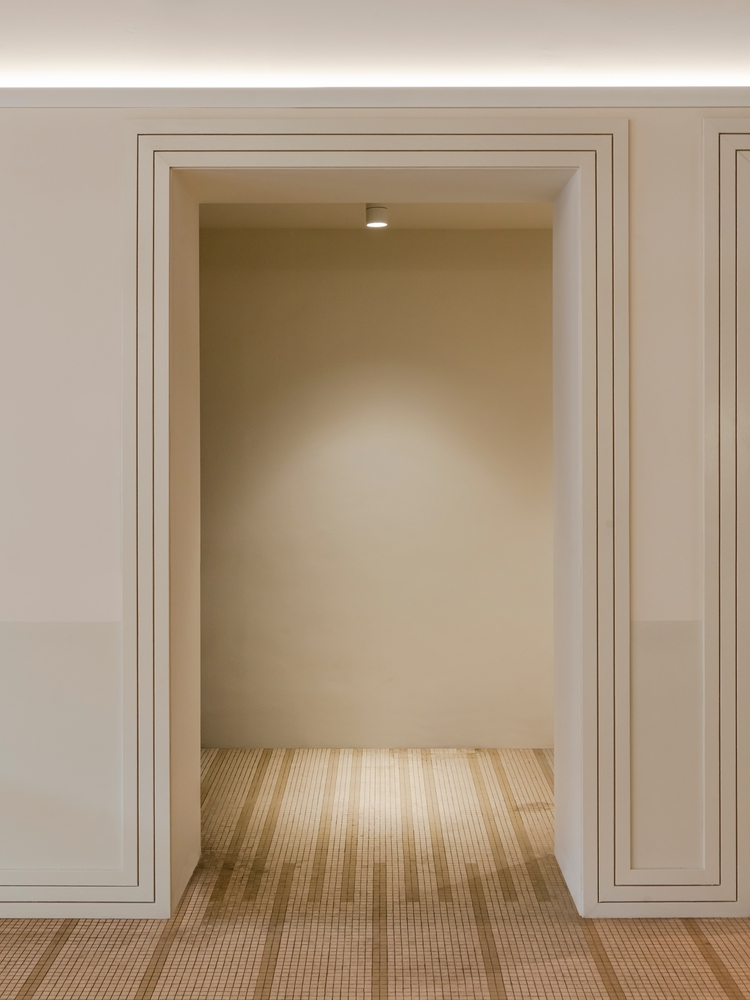 The architects at JUJURWORK carefully balanced historical preservation with innovative design. The original mosaic floors and wooden louvers were preserved, while new architectural features were introduced to meet modern needs. The centerpiece of the café, the onyx reception coffee bar, serves as an homage to the building’s façade, reflecting a commitment to sustainability by repurposing discarded onyx tiles found in a nearby stone yard.