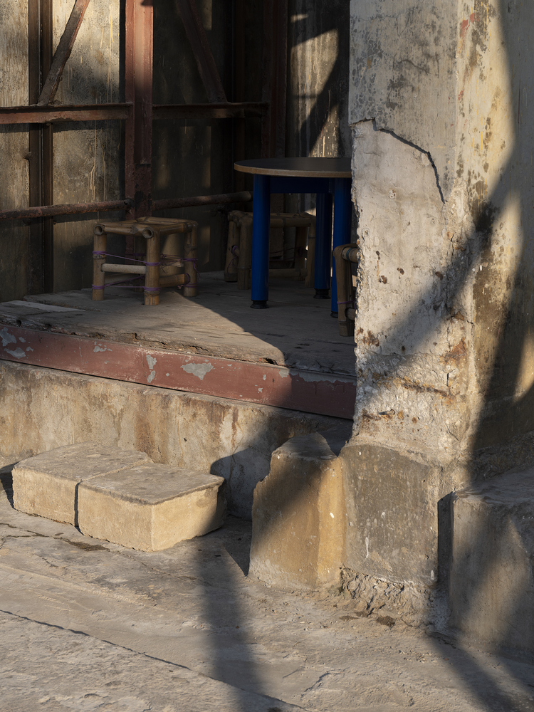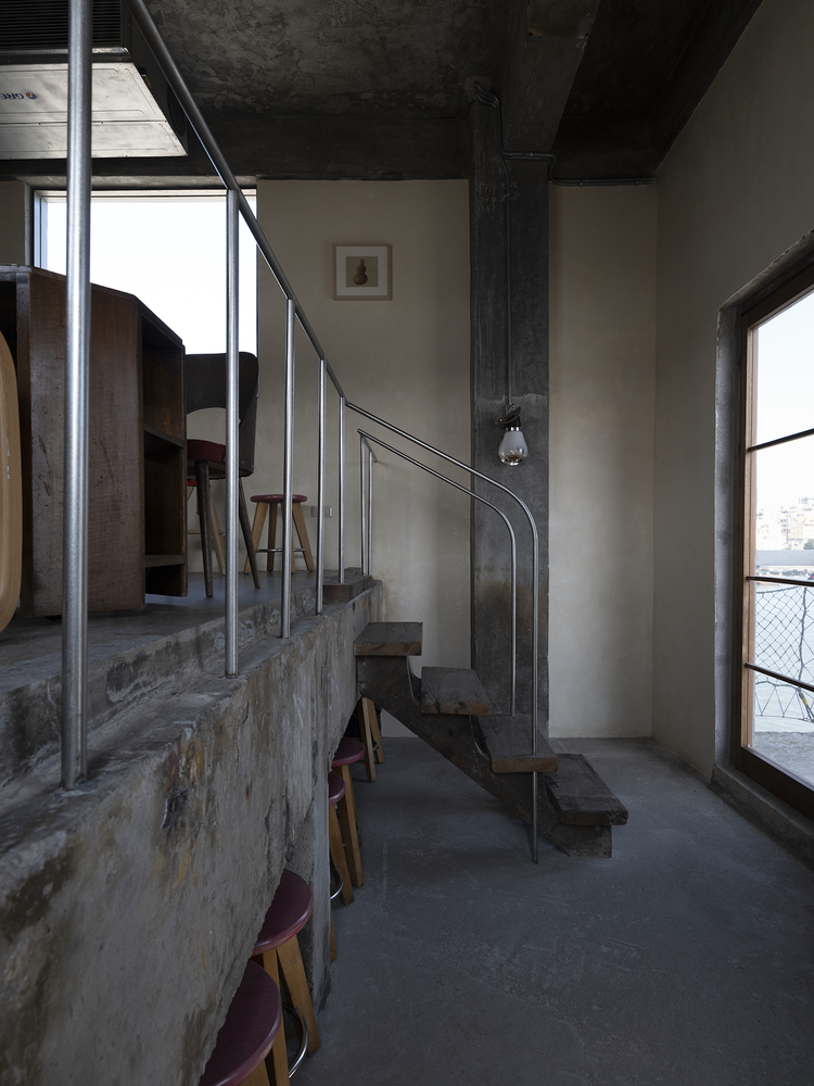 While the design retains the rough, weathered surfaces of the original structure, subtle interventions add a sense of quality. Furniture, lighting fixtures, and artwork selected by the owners complement the restrained design approach, enhancing the space’s character without overpowering its simplicity. These thoughtful touches contribute to the café’s warm and welcoming ambiance.