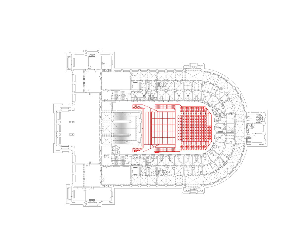 Ventilation and fire safety systems were discreetly incorporated above the main staircase roof, ensuring that modern infrastructure did not compromise the visual integrity of the heritage building. This meticulous attention to detail underscores the complexity and precision required in adaptive reuse concert hall architecture.