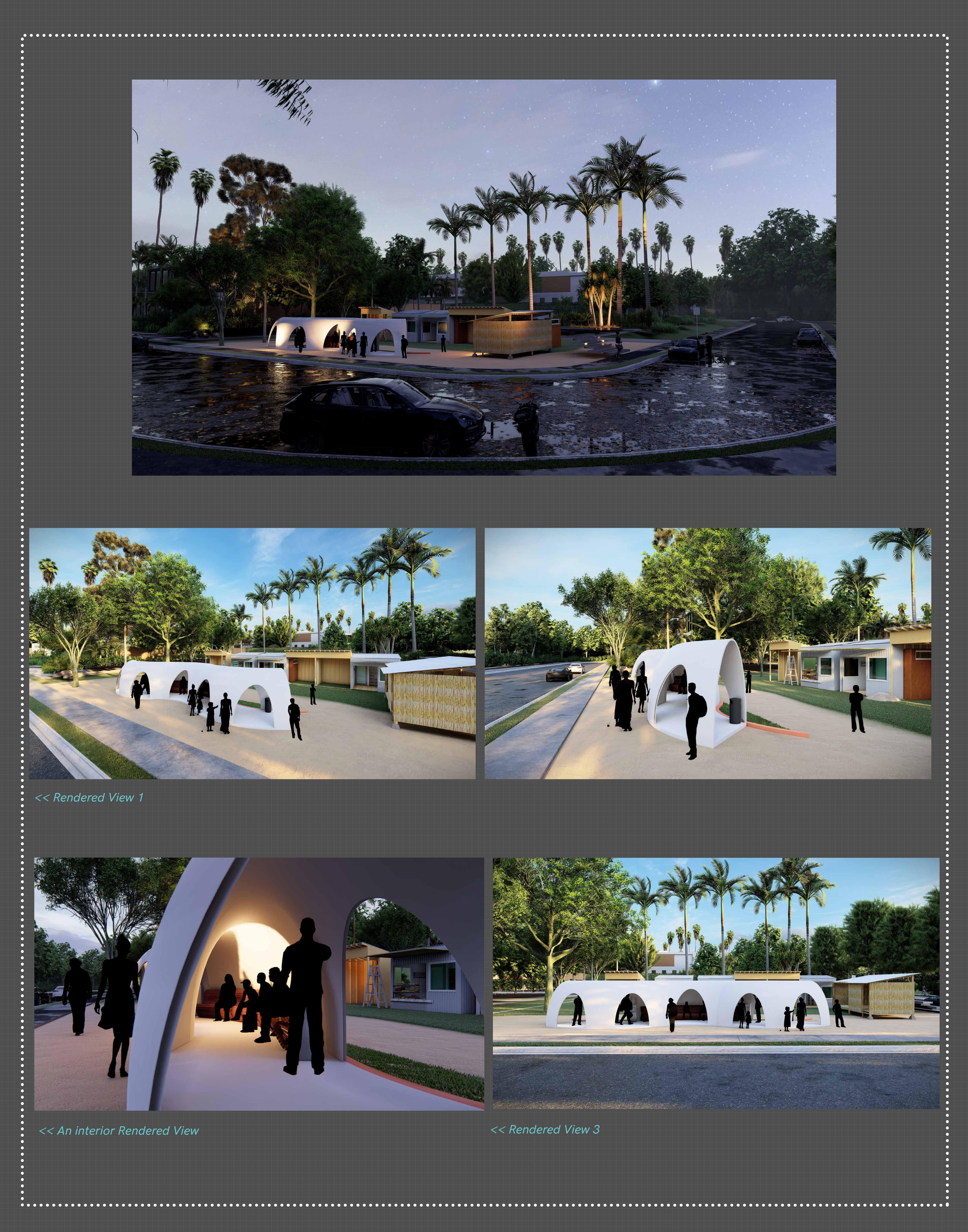 Description: Our design integrates the art exhibition function into the bus station. For many artists: art students, new artists, etc., provide a place to display their works, and even sell their own works. On the other hand, citizens can feel art when they pass the bus station on the commuter road.