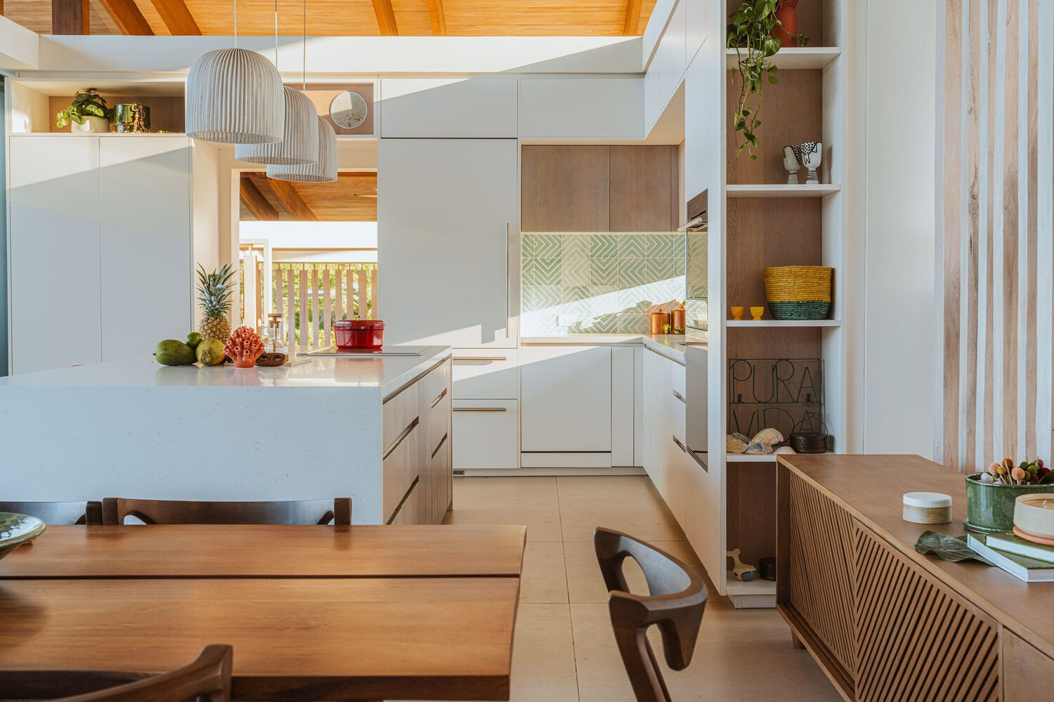 At the heart of Villa Áurea is a commitment to sustainability. The home is composed of independent volumes, strategically positioned to encourage passive cooling. Large overhangs and ventilated corridors enhance airflow, ensuring that the interior remains cool without excessive energy consumption.