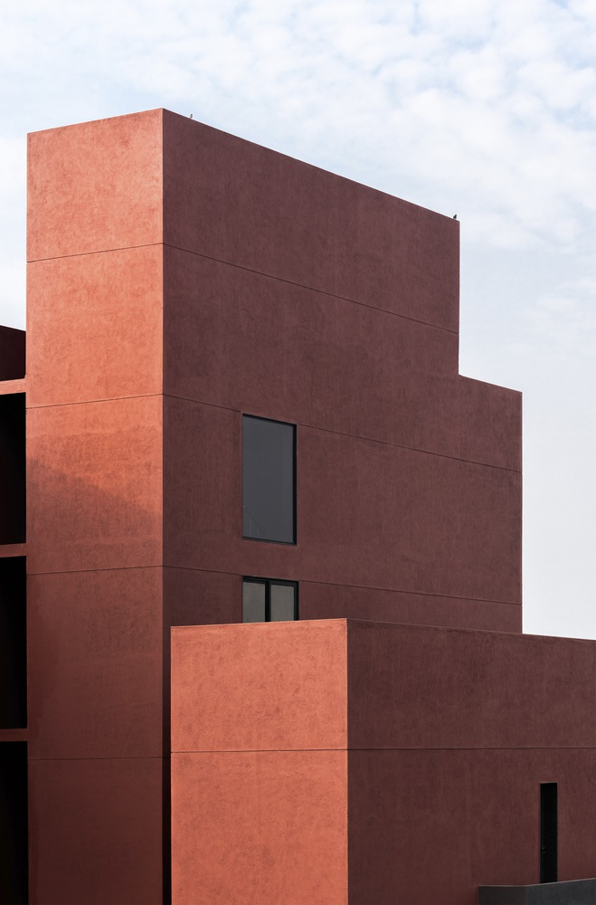 The design of the Red Vessel Hotel draws inspiration from the nearby coastline and the visual imagery of shipping vessels on the horizon. This maritime theme influenced the hotel’s architectural narrative, incorporating elements reminiscent of ships which are seen as protective, efficient, and sustainable structures. The architects aimed to create a hotel that not only serves as a shelter but also blends seamlessly with its coastal environment, enhancing the guest experience by making the most of the natural landscape.