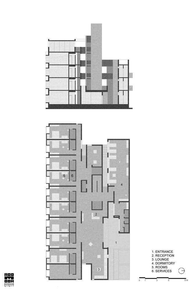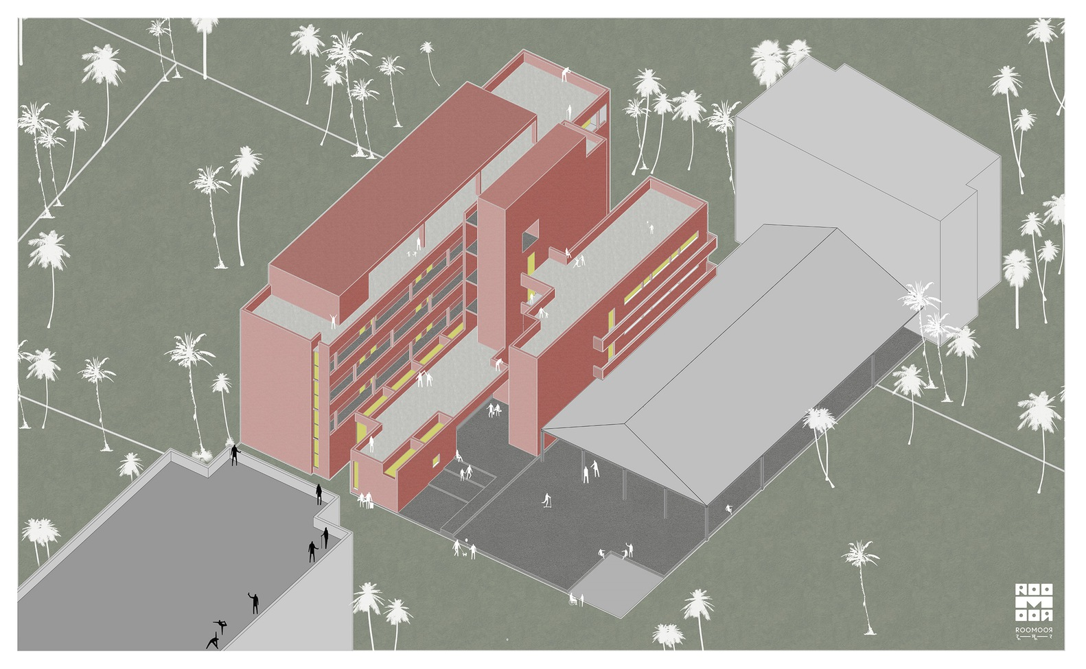 The hotel is organized into three parallel linear structures that stretch from east to west, optimizing natural shading and ventilation. These buildings are linked by semi-open corridors that encourage interaction with the surrounding landscape, making the most of the sea breezes and coastal views. The southernmost block houses the main guest rooms, while a two-storied dormitory block to the north includes additional guest accommodations and access to outdoor terraces.