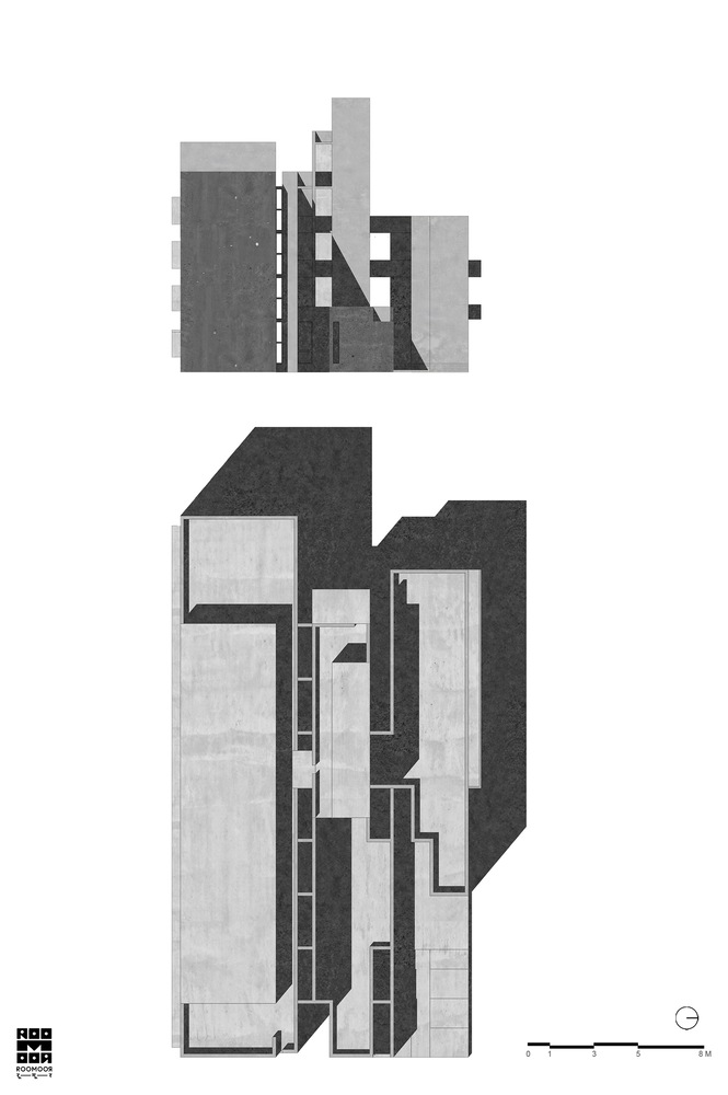 ROOMOOR's design uses red color palettes and dark interiors to mimic the feel of a ship’s interior—tight, enclosed but safe and navigational. Natural light plays a crucial role in defining the spaces, with strategically placed skylights guiding visitors through the building while creating a play of light and shadow that enhances the spatial quality of the interiors.