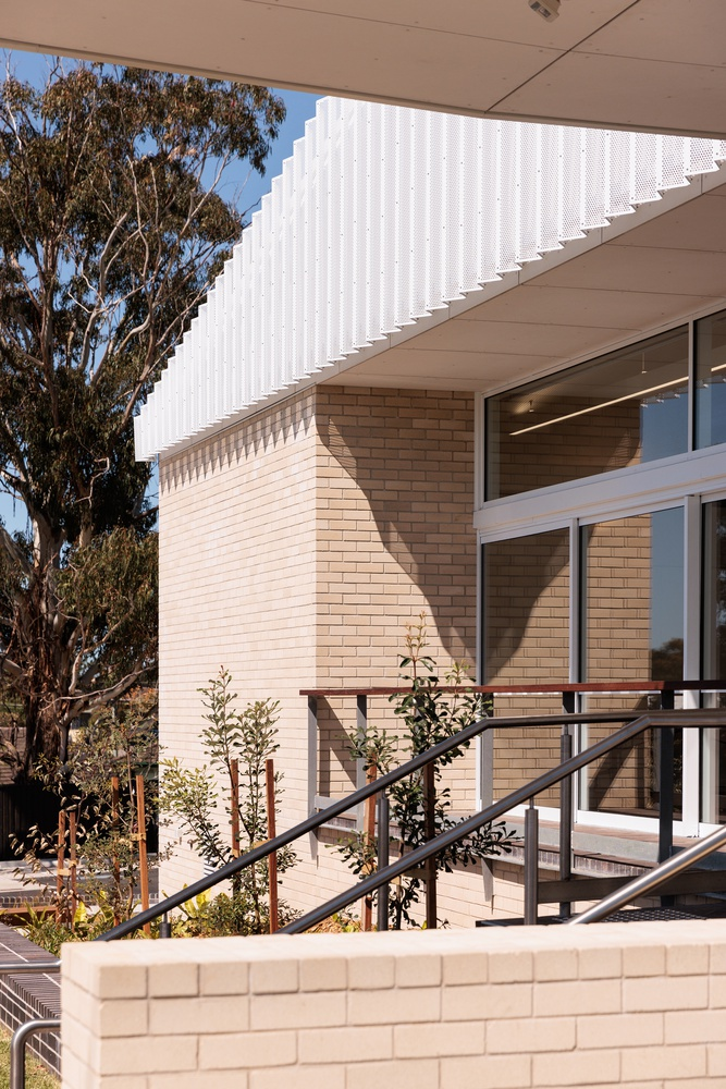 Sustainable design principles play a significant role in the Windale Hub’s architecture. Natural ventilation, passive cooling strategies, and locally sourced materials contribute to the building’s low environmental impact. The use of perforated metal screens not only enhances aesthetics but also provides effective sun shading, reducing heat gain and improving energy efficiency.