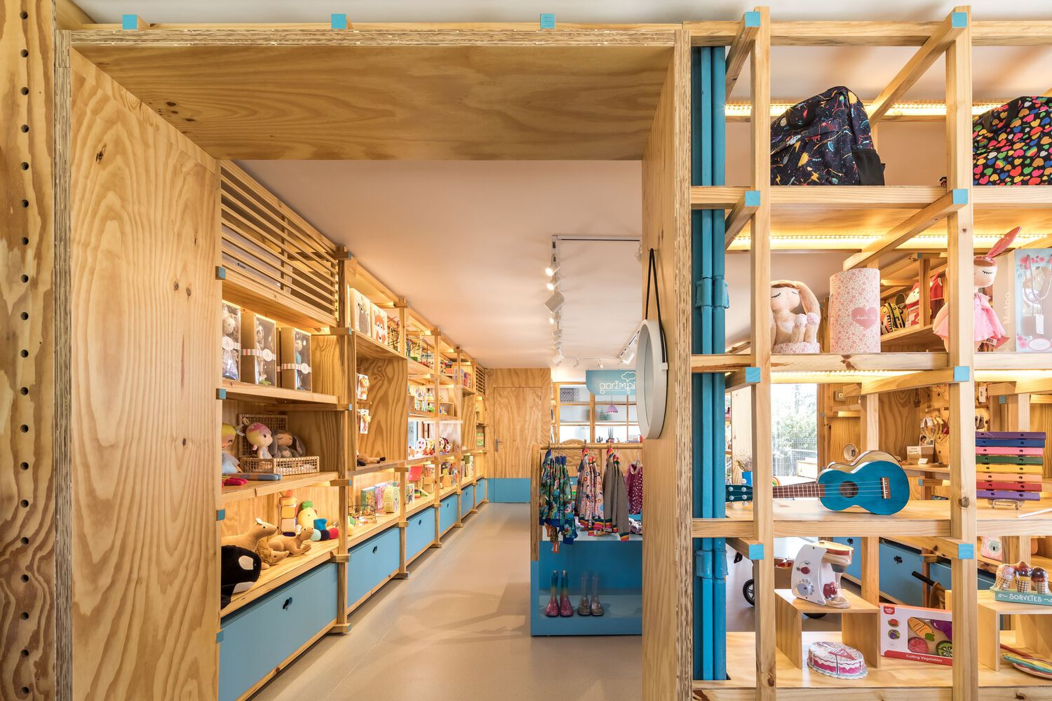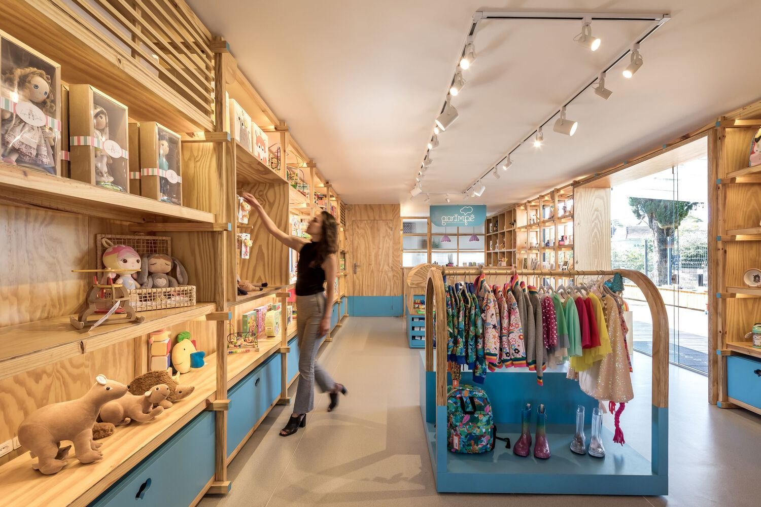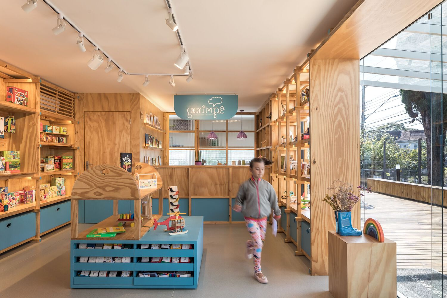 Through this expansion, Garimpê not only meets the practical needs of a growing business but also aligns with the values of its brand, offering a space where children can explore and interact with products that help them develop their skills. This approach exemplifies the growing trend in store architecture for children, which seeks to combine functionality, education, and aesthetic appeal in ways that resonate with young customers.
