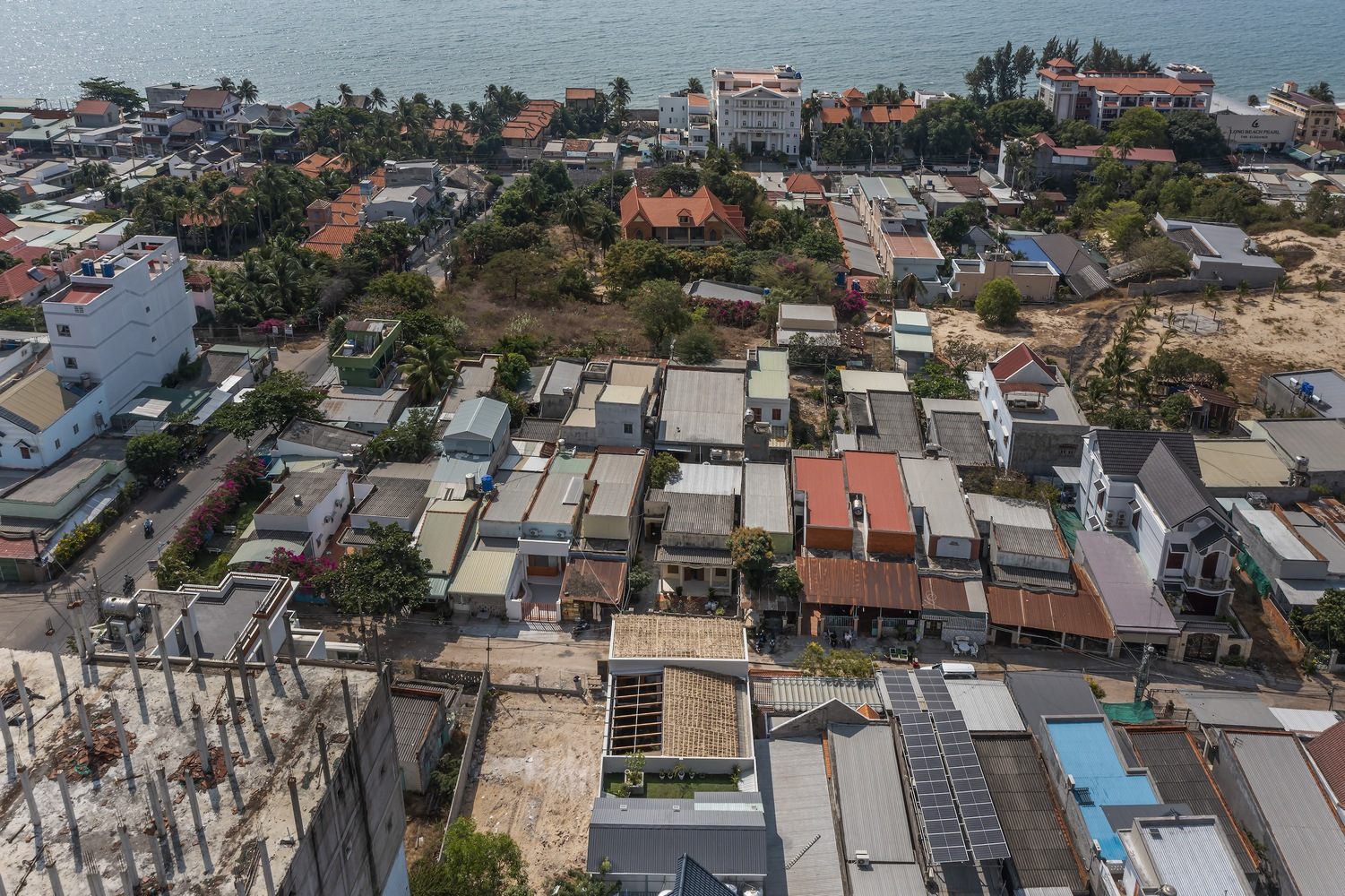 The architects skillfully wrapped the brick walls and old building consoles into the support systems, creating a design that feels both traditional and innovative. Inspired by sea coconut leaves and the textures of Hanoi's streets, the building stands as a testament to the seamless flow of culture between the urban and coastal landscapes of Vietnam.