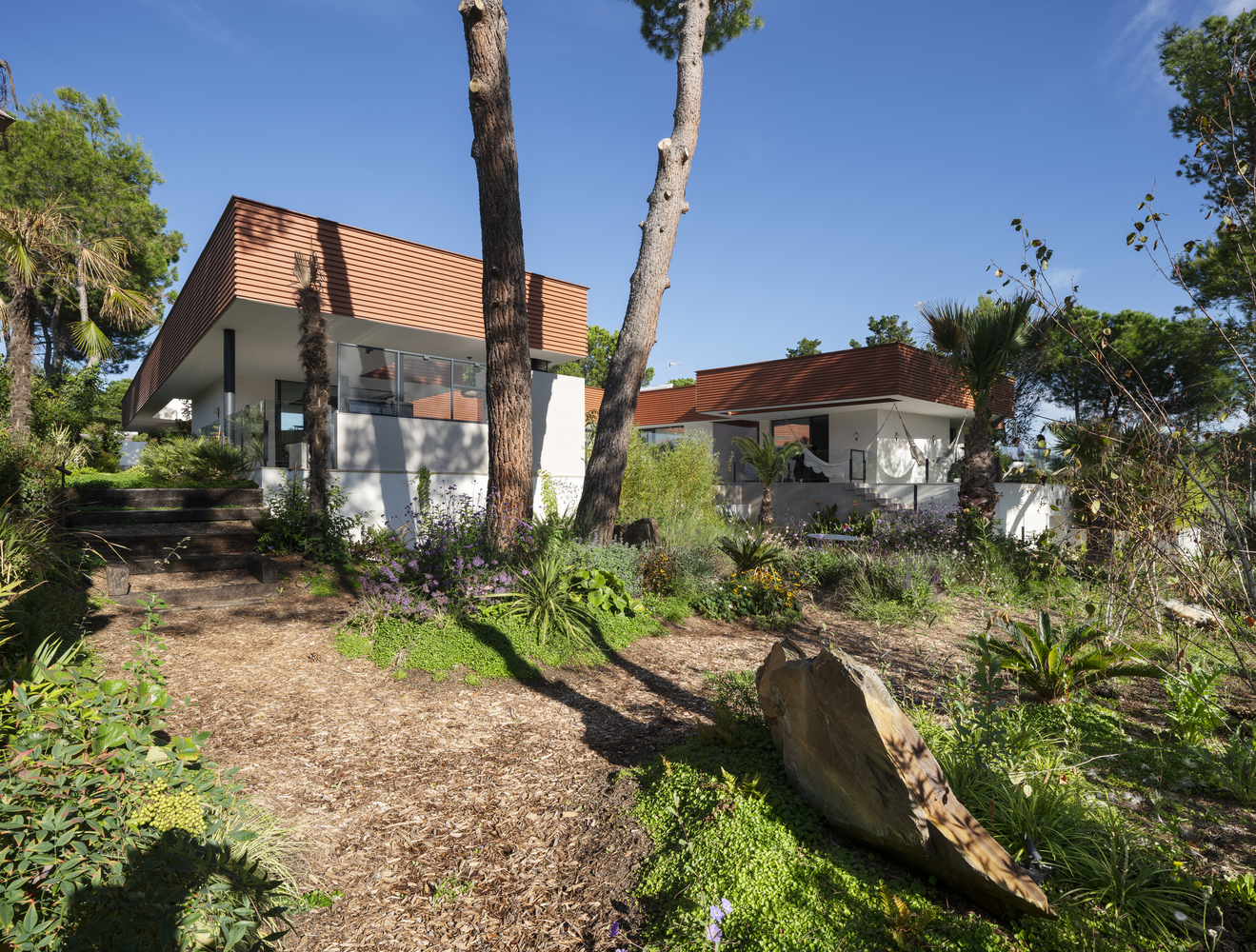 The architects have masterfully designed the villa to maintain a delicate balance between autonomy and openness. Large windows and skylights ensure that natural light bathes the interiors, enhancing the sense of space and connection to the outdoors.