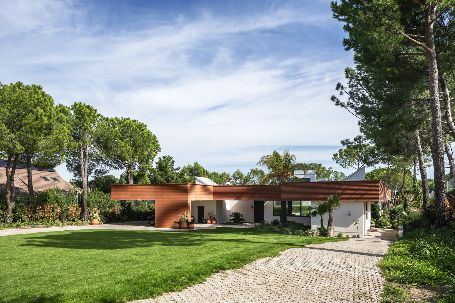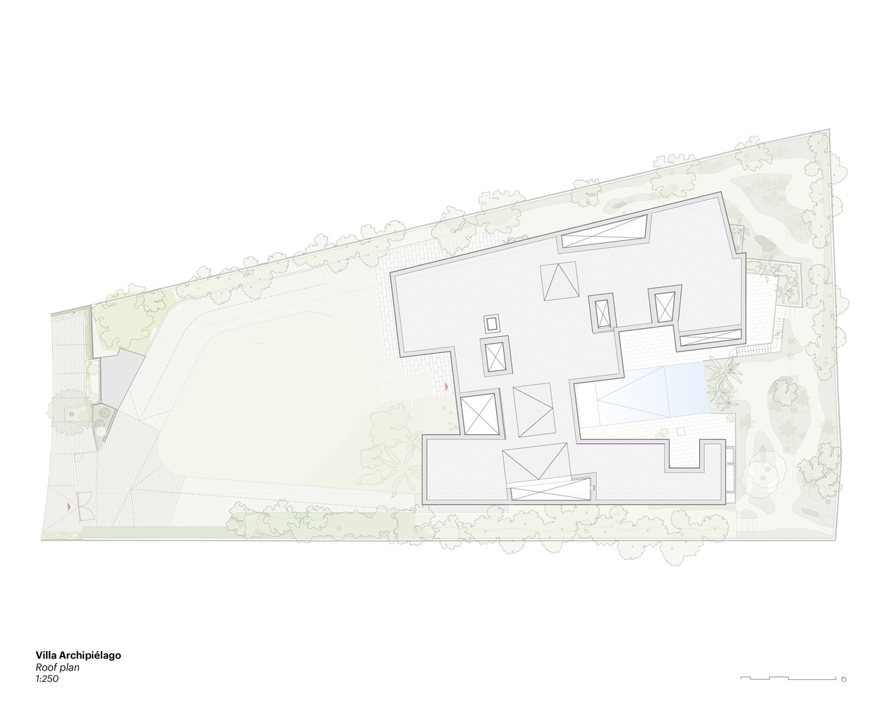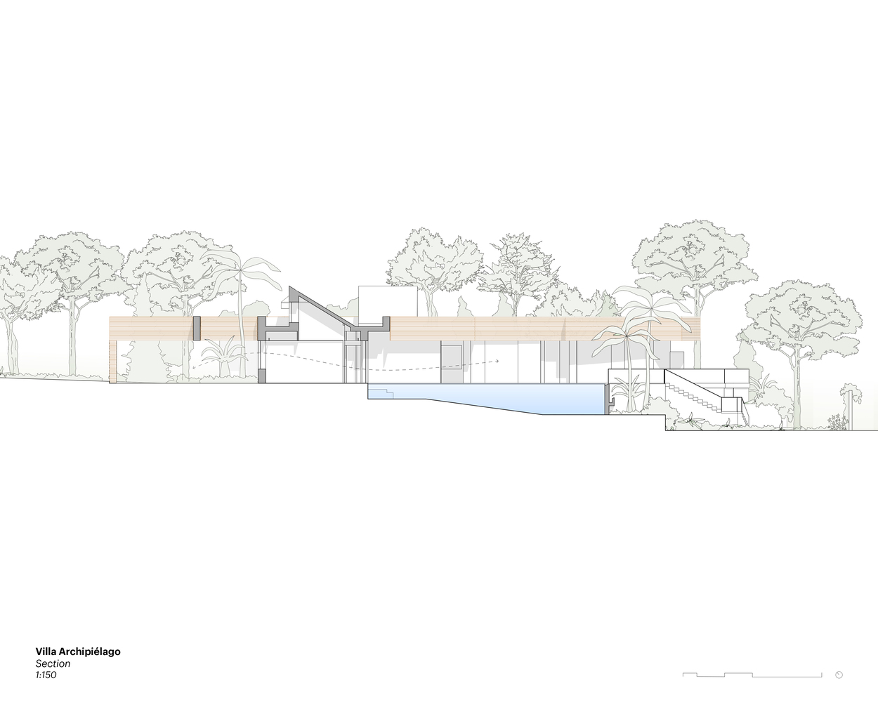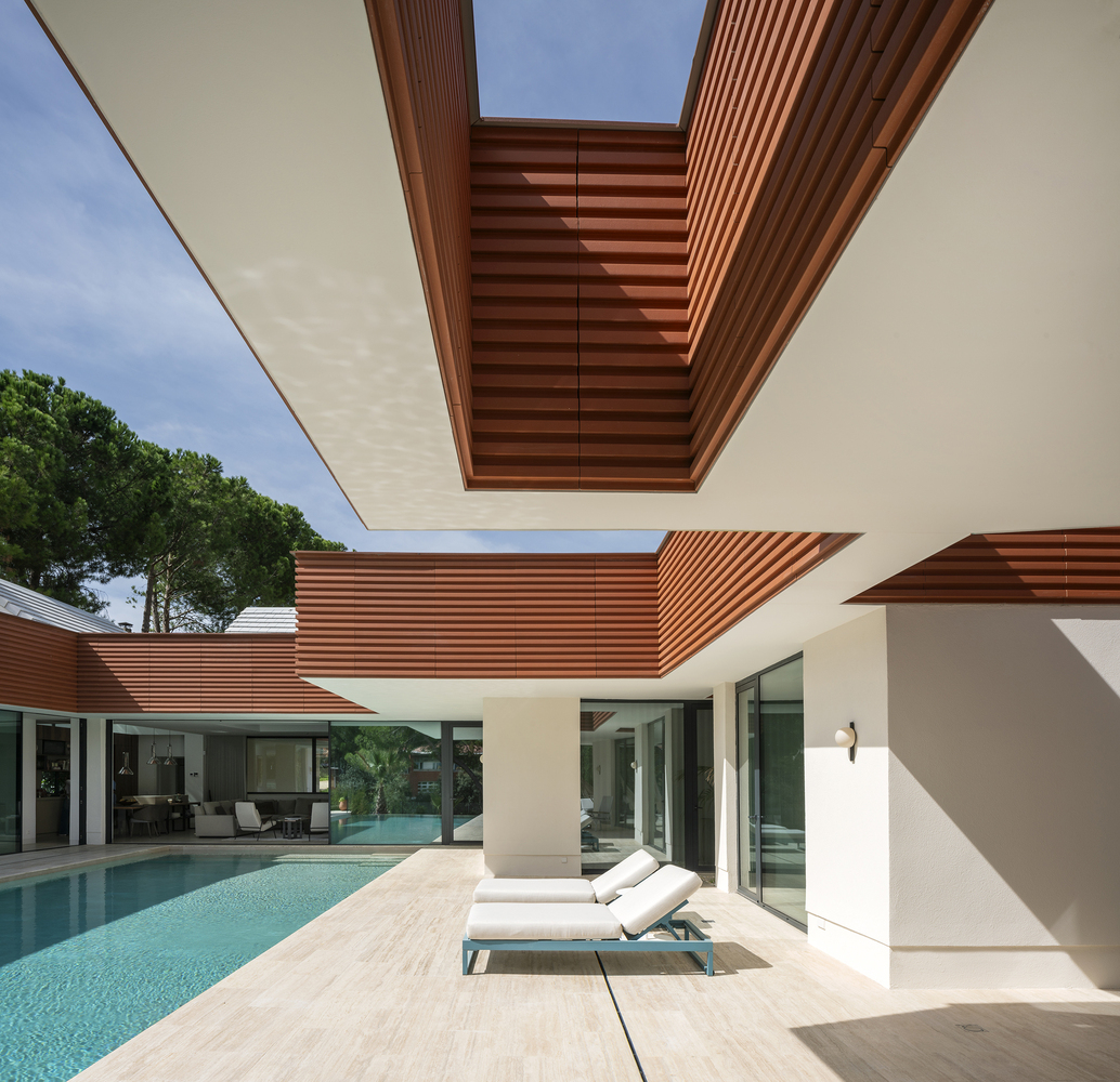 A standout feature of Archipelago Villa is its impressive ceramic roof. Spanning across all islands, the roof not only unifies the structure but also offers protection and aesthetic appeal. Its design as a flat ribbon that seemingly floats above the house adds a touch of elegance and sophistication.