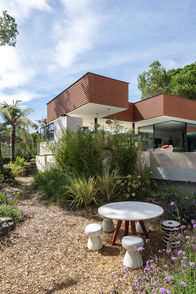 The villa's layout is meticulously planned to cater to the needs of its inhabitants. The family island, accessible via the aromatic garden, includes a dining room, living room, and an open kitchen. The daughters' island features three large bedrooms, offering privacy and comfort. The private island for the parents boasts a luxurious bedroom, dressing room, and a spacious bathroom, opening up to a private garden with a tropical feel.