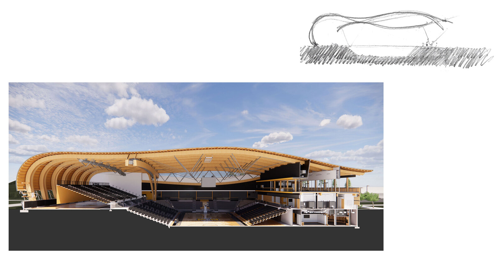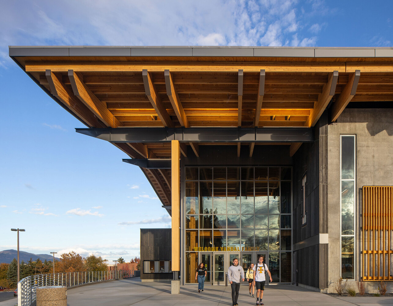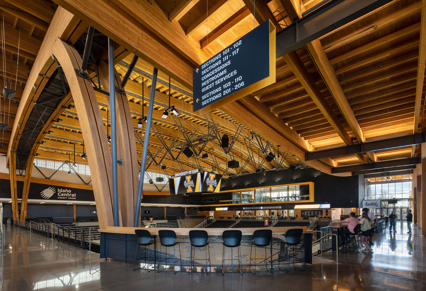Explore the University of Idaho Central Credit Union Arena's innovative sustainable design in sports architecture, showcasing mass timber and natural elements.
