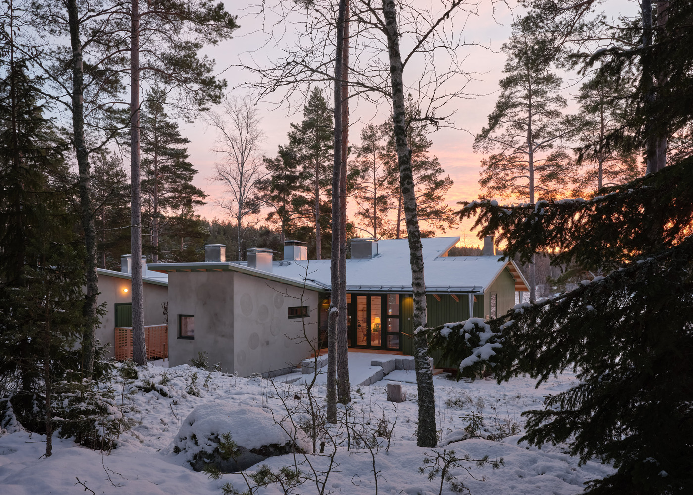At the heart of Huvila House's design is the ambition to create an environmentally friendly dwelling that is both gentle on the senses and grounded in simplicity and authenticity. The house embodies a contemporary aesthetic enriched with local handicrafts and art, situated at the forest's edge, overlooking a vast field. The challenge of designing for a client with chemical sensitivities led to an exploratory process of material selection, ensuring that each element contributed to a healthy living environment.