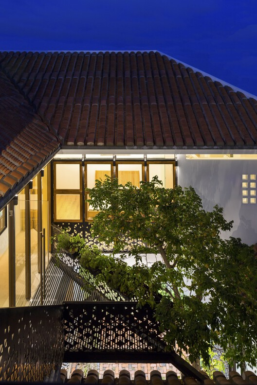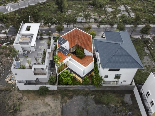 The prevailing urban housing blueprint often sacrifices privacy for open side windows, creating a setback from the land boundary. In response, the ROTATING house takes a bold step inward, drawing inspiration from the multi-layered composition of the traditional Hoi An house. Instead of adhering to the norm, the entire width of the site is utilized, opening up to inner landscapes divided into five parts – two living spaces intertwined with three gardens, all connected by the innovative "nhà nối" (connecting block).