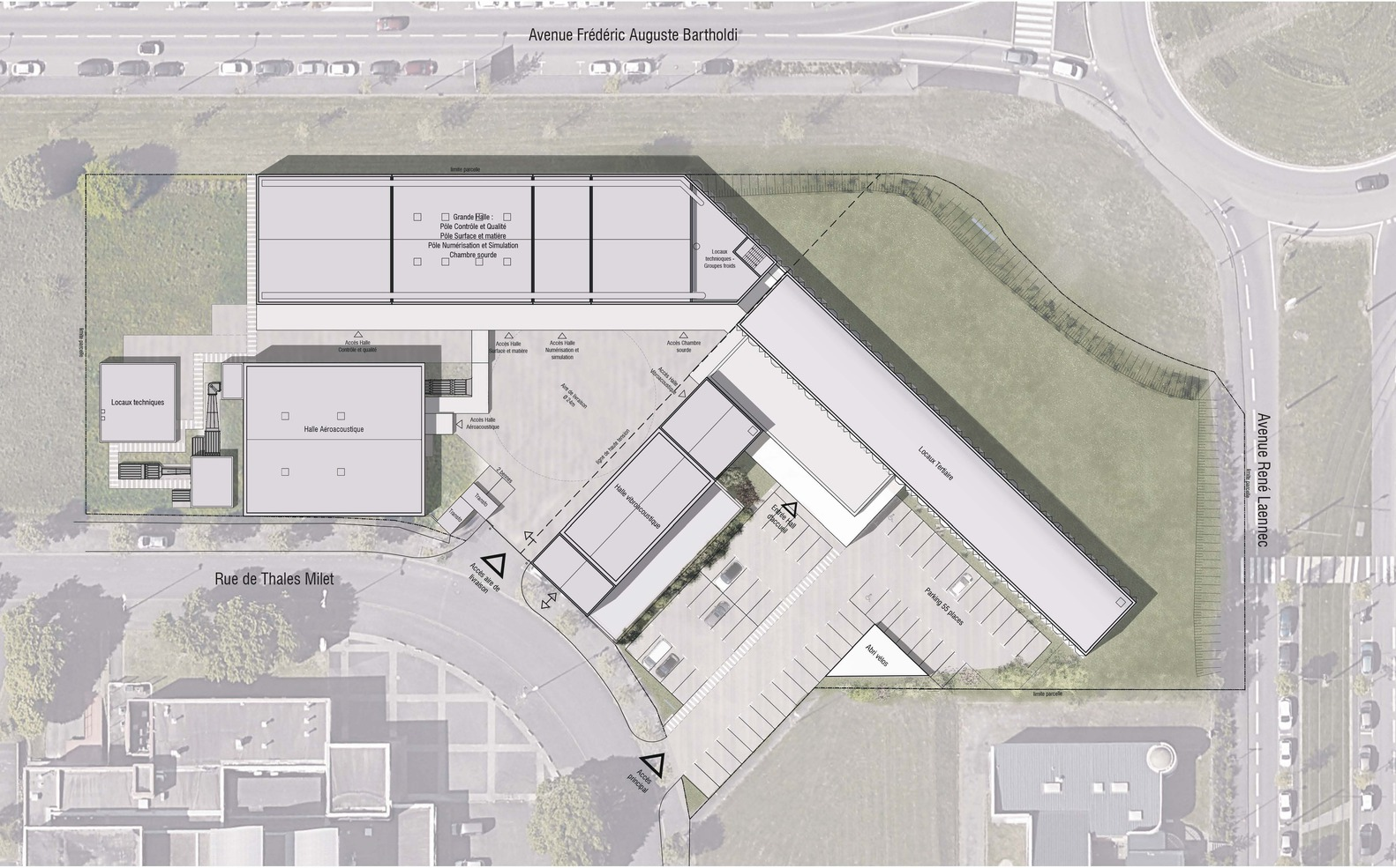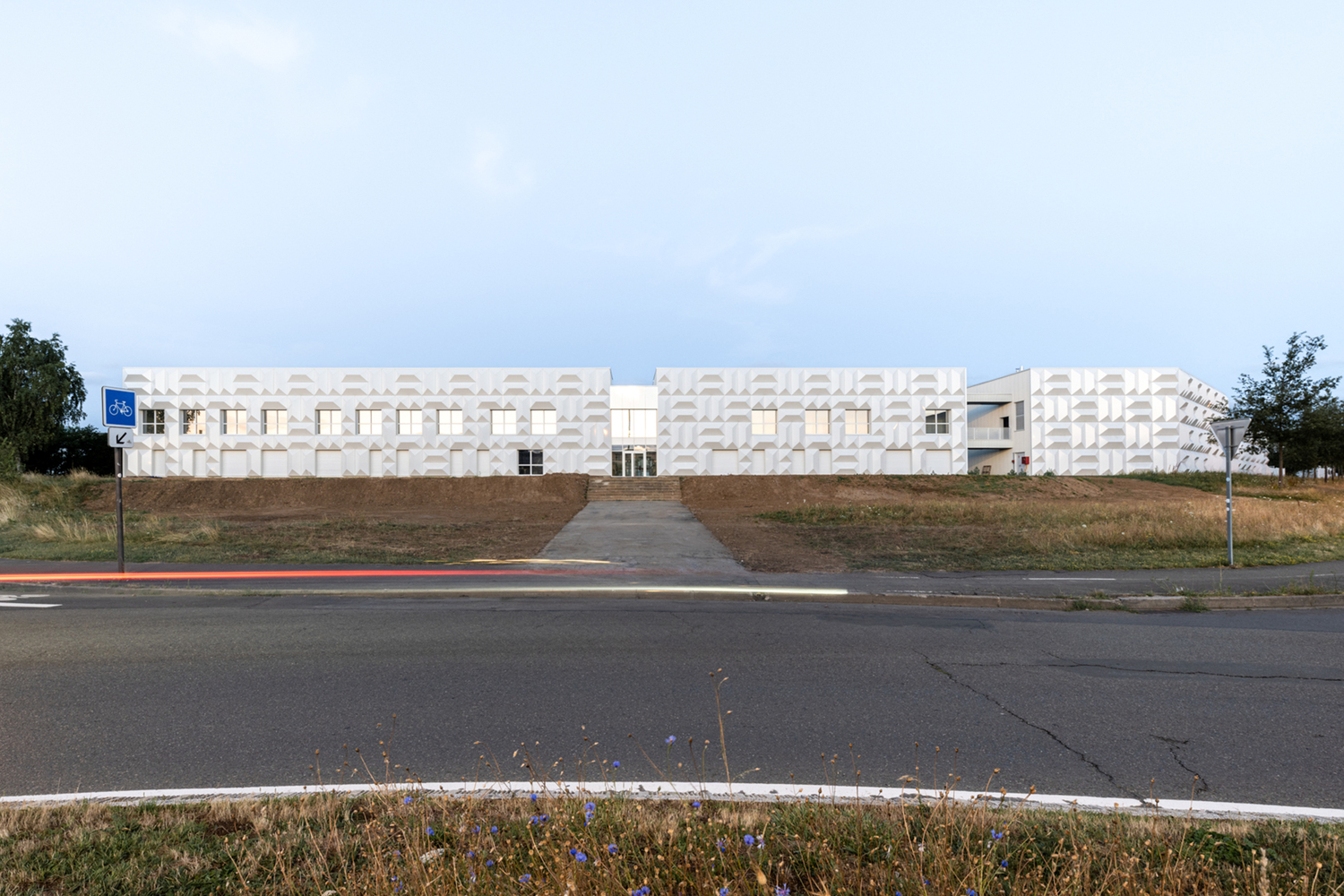 Strategically located near the university campus, Technocampus Acoustique is designed to be easily accessible while also serving as a landmark for the city. The caisson façade extends from the existing buildings to the new research labs, creating a cohesive visual identity that signals the campus’s presence to those passing by on the adjacent boulevard.