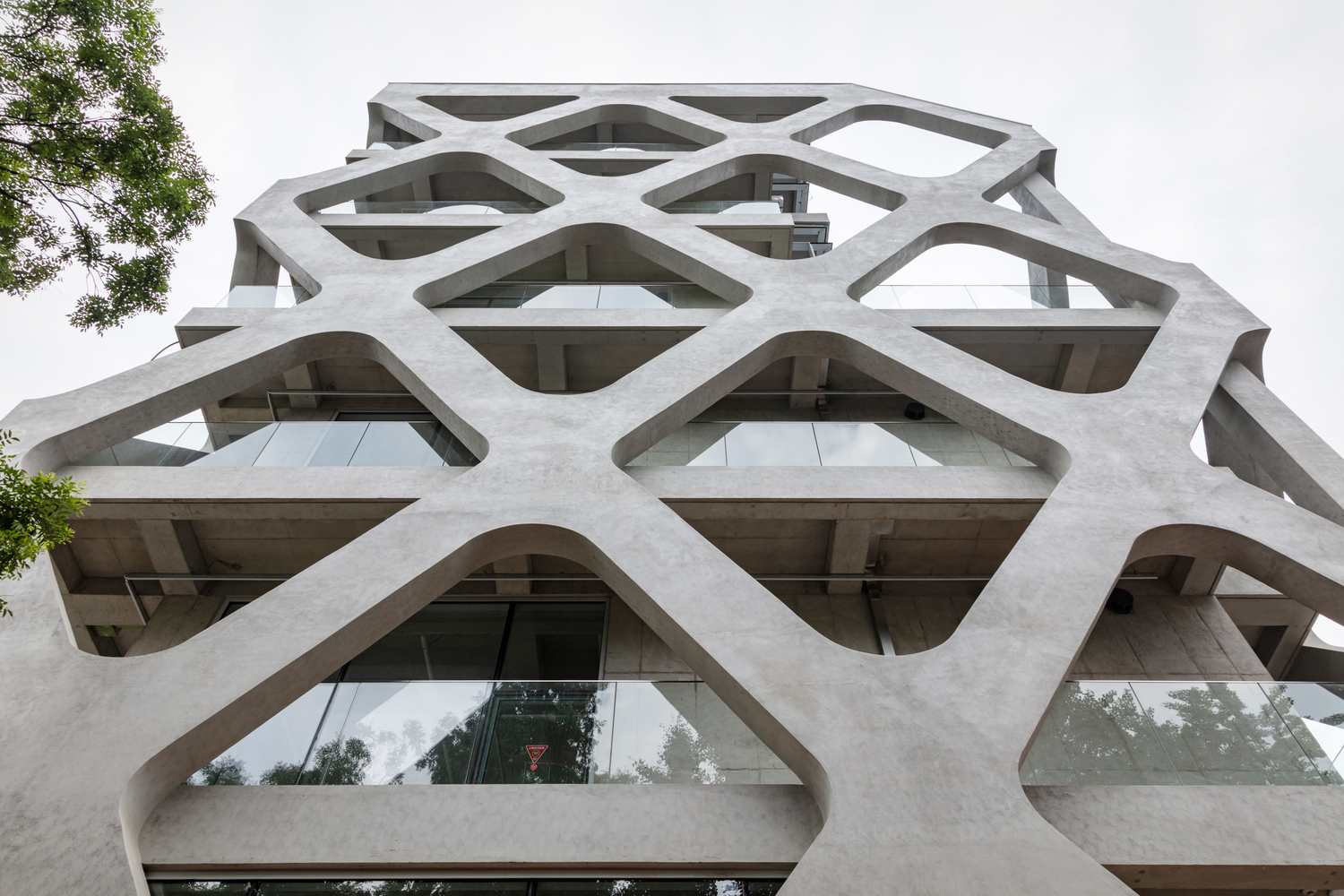 The internal circulation is marked by voids and open spaces that facilitate easy movement throughout the building. These vertical passages create moments of pause, where visitors can take in dynamic views framed by the structural elements. These spaces reinforce the idea of the building as an experience, where the architecture becomes a part of the journey through the space.