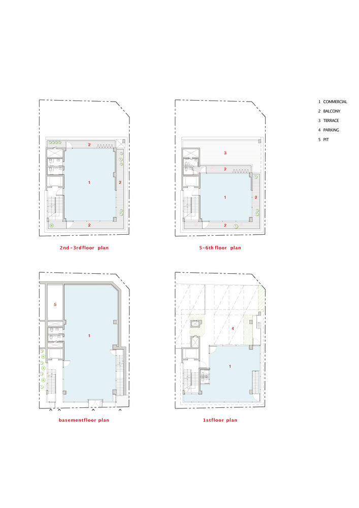 "Folded Ground" is not just an architectural statement; it is designed with purpose. Inside, the facility houses a mix of commercial spaces, offices, and communal areas. The design provides a series of open, adaptable spaces that respond to the changing needs of the community. Commercial areas with high visibility face the bustling streets, while private offices enjoy the tranquility of the interior, offering a balance between exposure and privacy.