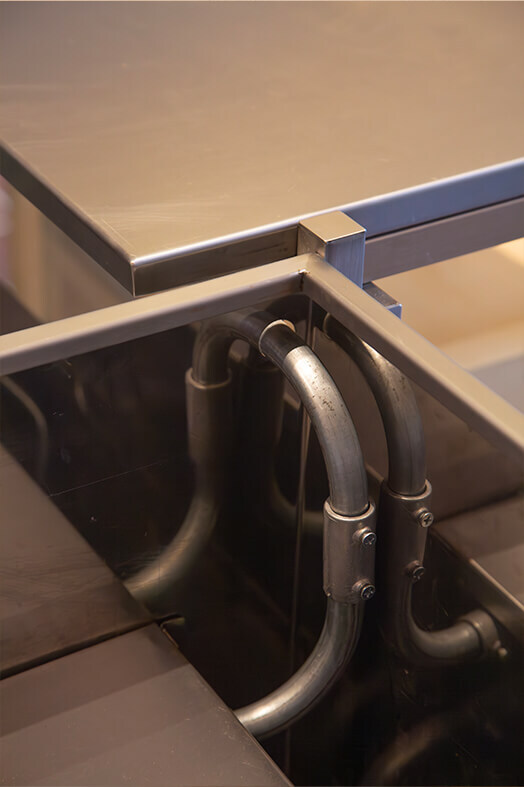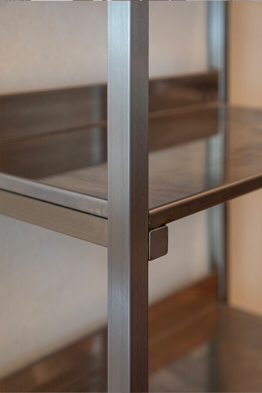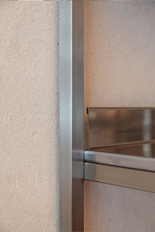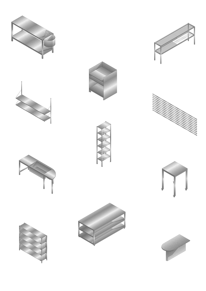 Strategically arranged kitchen devices transform the space into a series of islands, where each element, adorned in silver and stainless steel, contributes to the spectacle of food preparation. This design choice ensures that the culinary process remains in full view, inviting guests to engage with the artistry of pizza making.