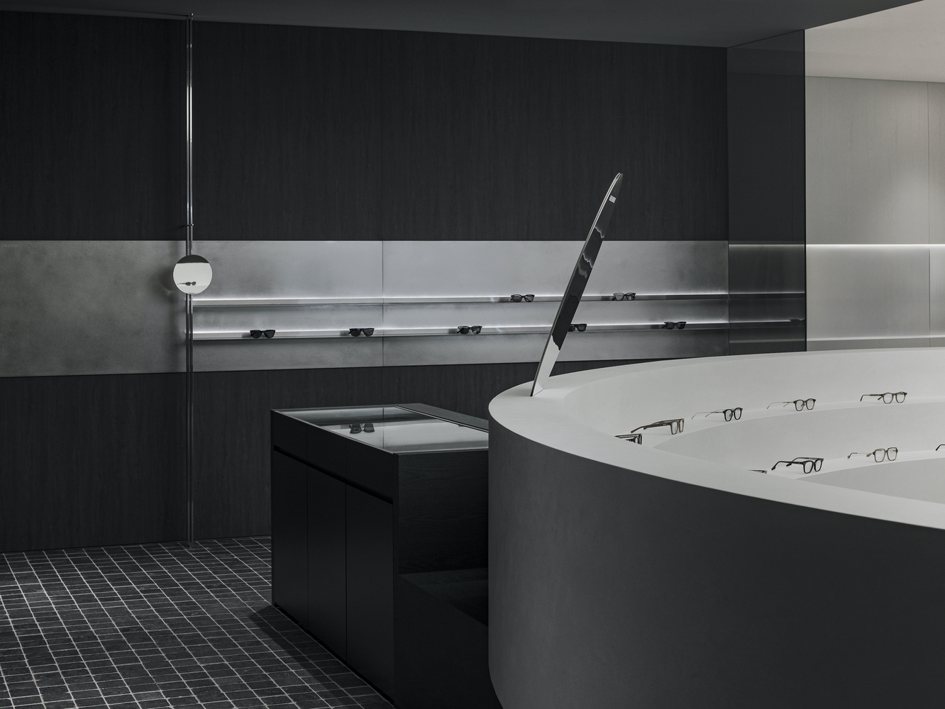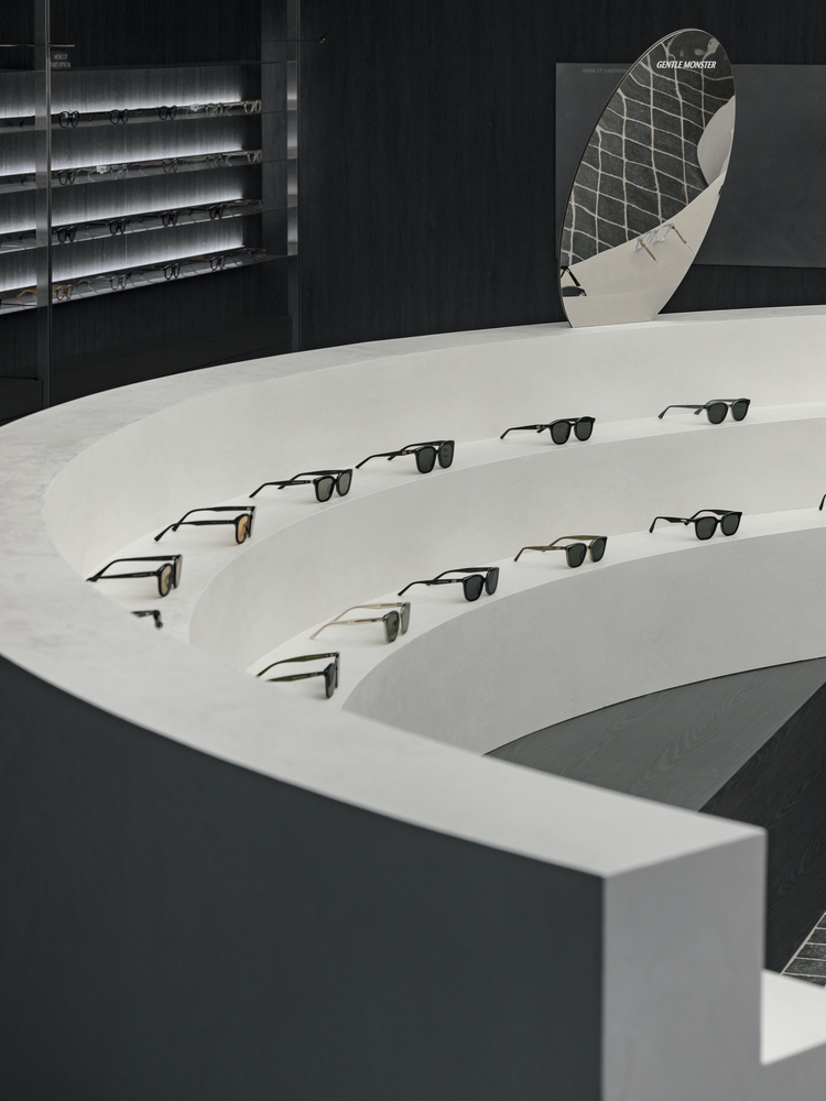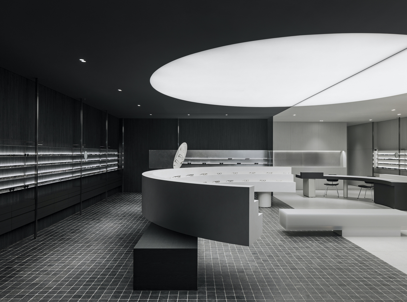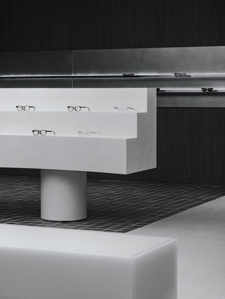 GLASS STAR Eyewear redefines minimalist retail store design with a monochromatic palette, geometric forms, and an immersive shopping experience.