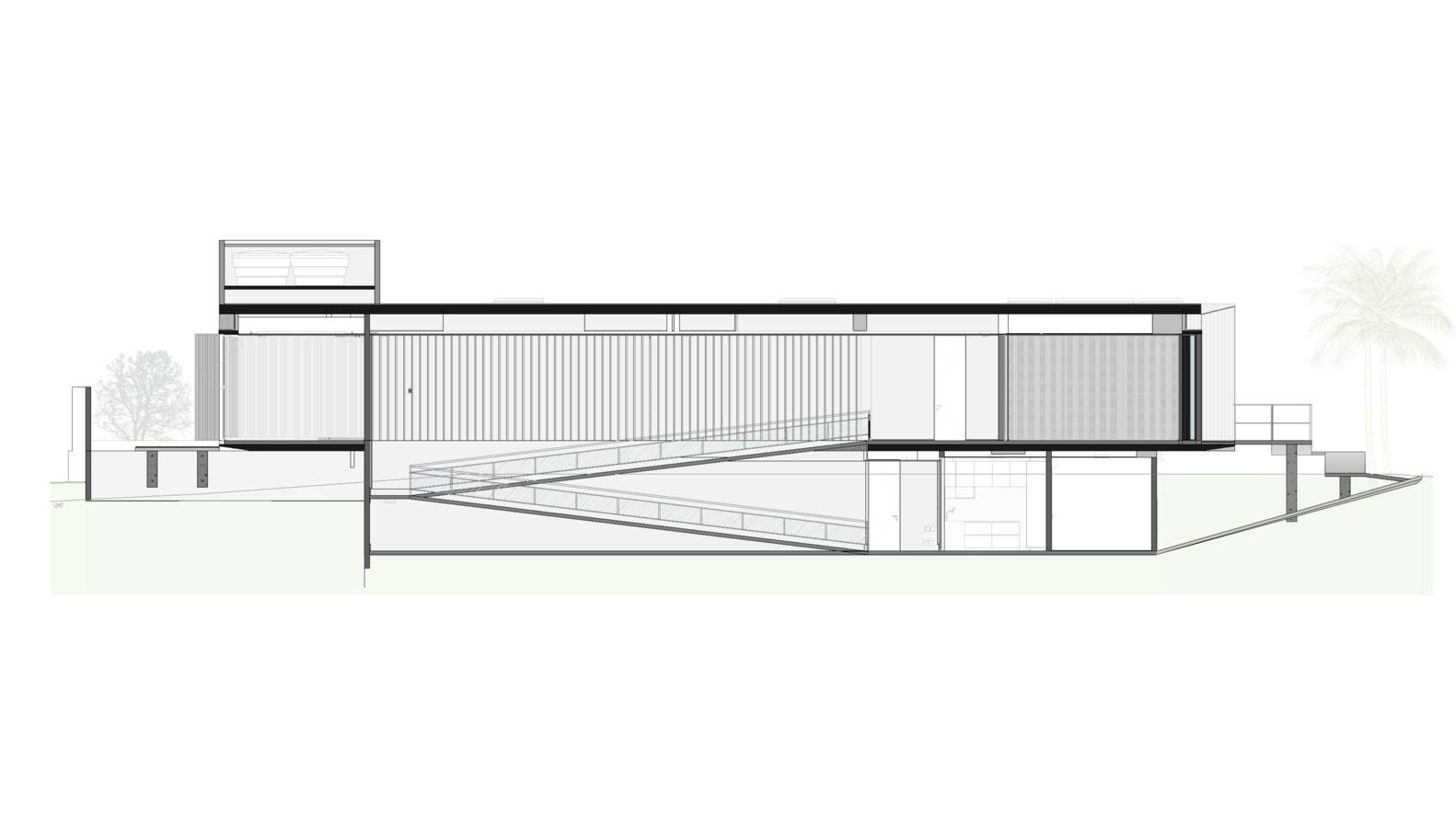Accessed via a ramp that acts as a transition rather than a threshold, House EJ welcomes visitors with a processional experience. This ramp is more than circulation—it’s a gentle ascent from street to sanctuary. Once inside, the house reveals a thoughtful subtraction: a void carved out from the massing that unveils a serene courtyard beneath a pergola.