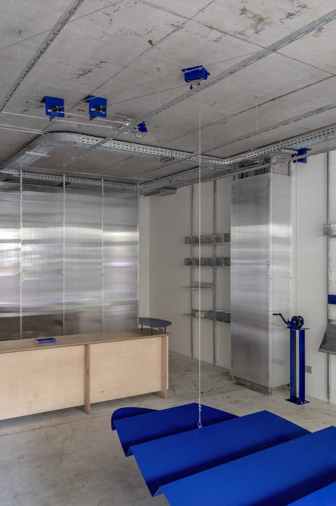 • Cellular polycarbonate partitions, offering a lightweight yet visually appealing way to separate the retail area from the back office.