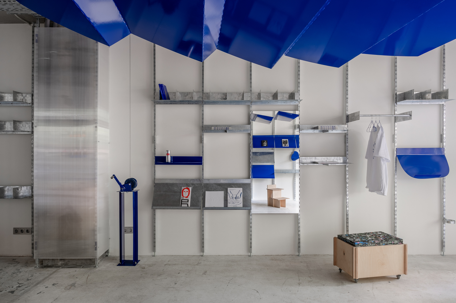 • Galvanized steel for exhibition surfaces, providing a modern, industrial aesthetic.