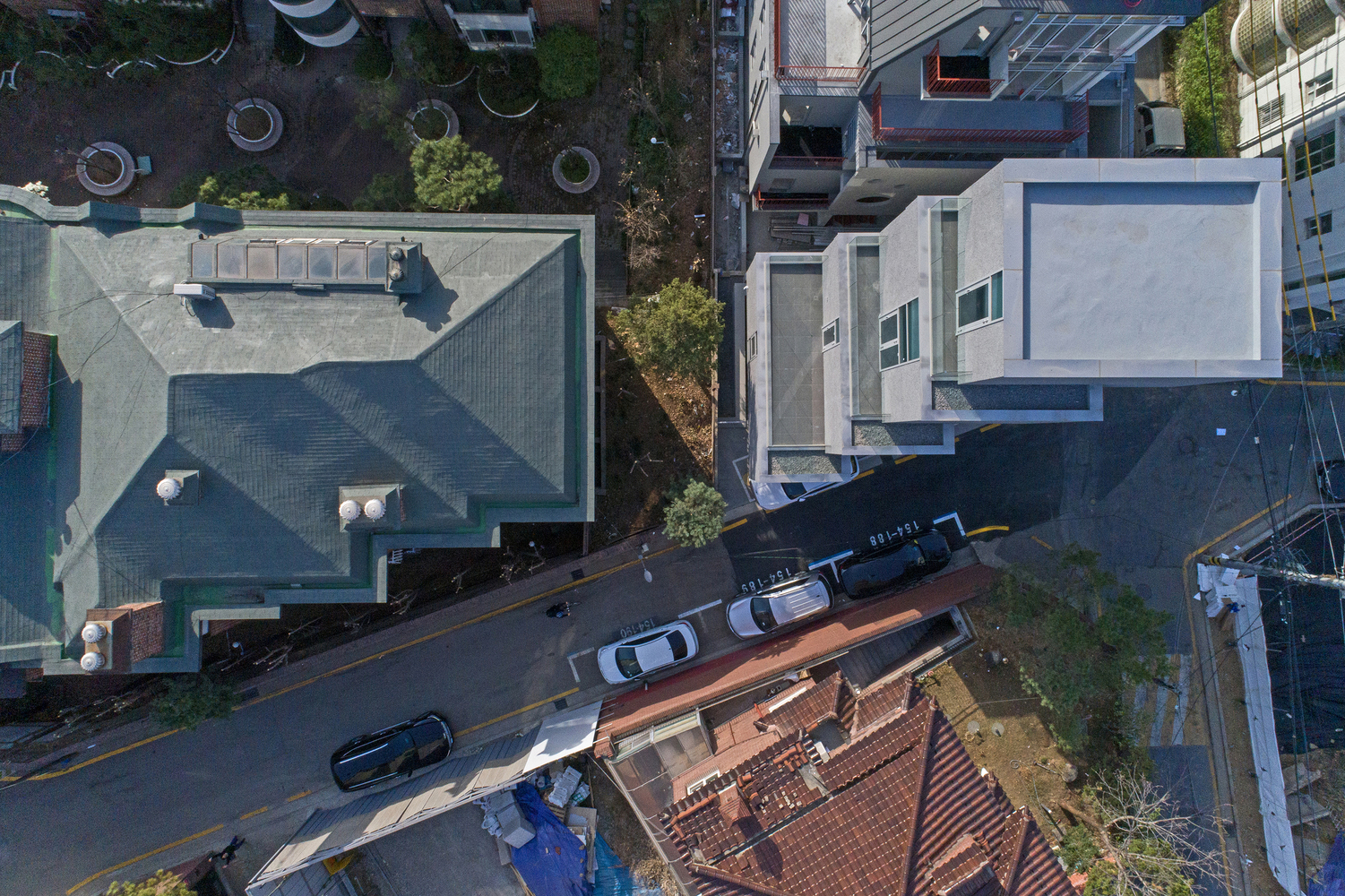 The inception of Chrome Company HQ was driven by a complex challenge: how to maximize usable space and natural light on a peculiarly shaped, 120 m2 plot of land. JYA-RCHITECTS approached this with a groundbreaking strategy, constructing a building that expands upwards, evolving from a narrow base to a wider top. This not only ensured two vital parking spaces but also preserved the direct north sunrise line, emphasizing the importance of natural light in modern office environments.