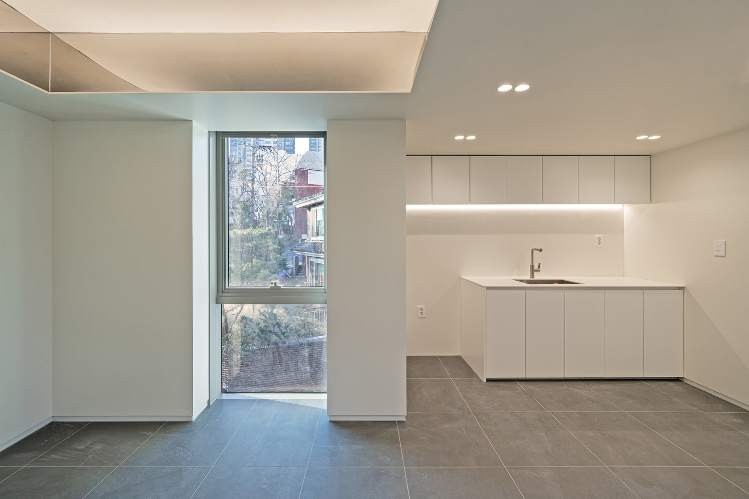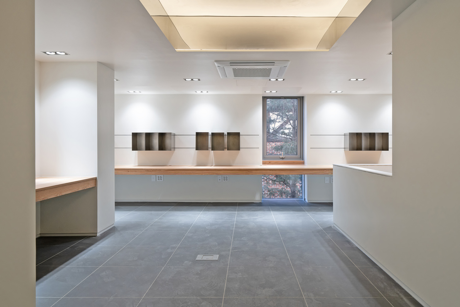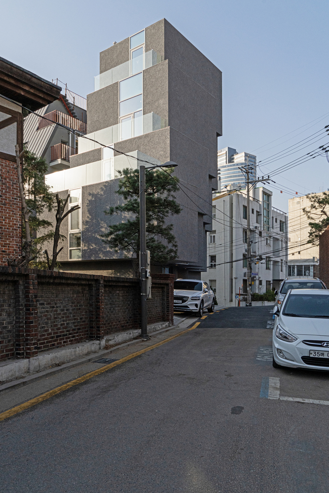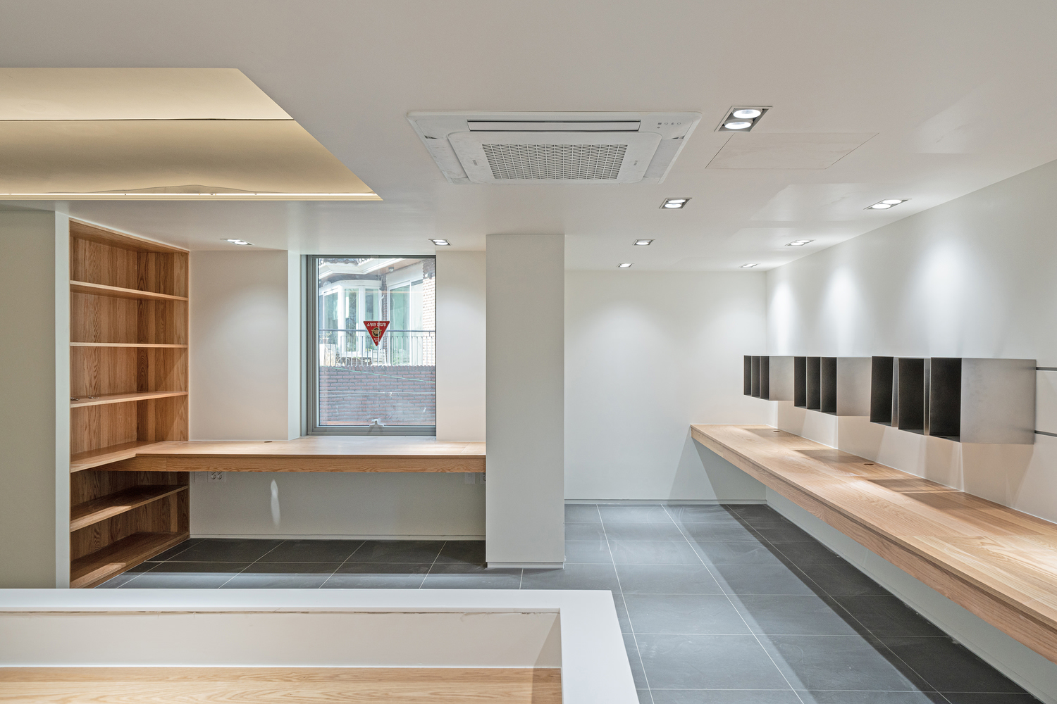 The plot's diamond shape posed a unique challenge for creating efficient, right-angled office spaces. JYA-RCHITECTS ingeniously navigated this by developing a staggered plan along the site's boundaries. This creative solution not only catered to the client's needs for functional right-angled spaces but also allowed for the addition of another floor, further maximizing the building's area and utility.