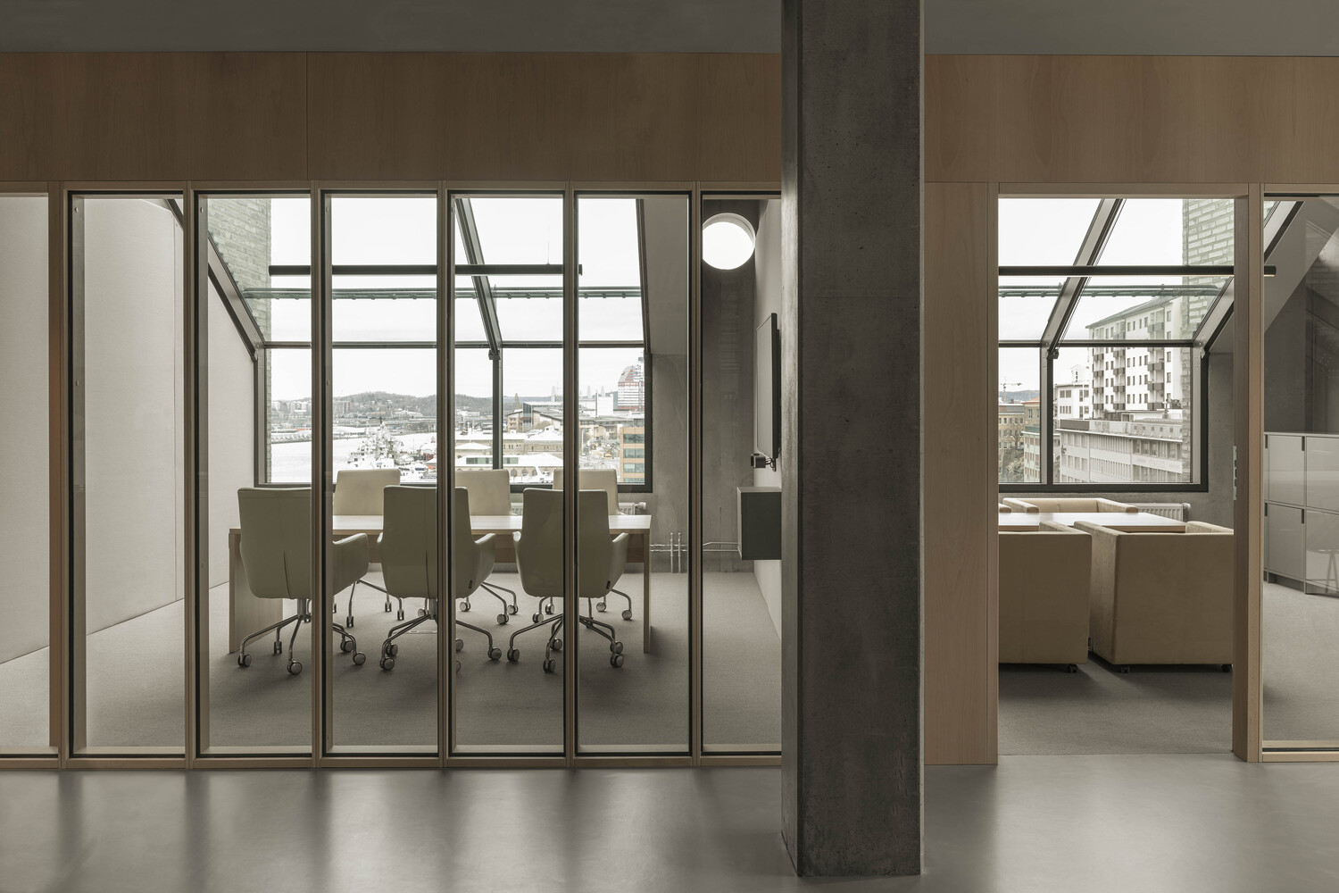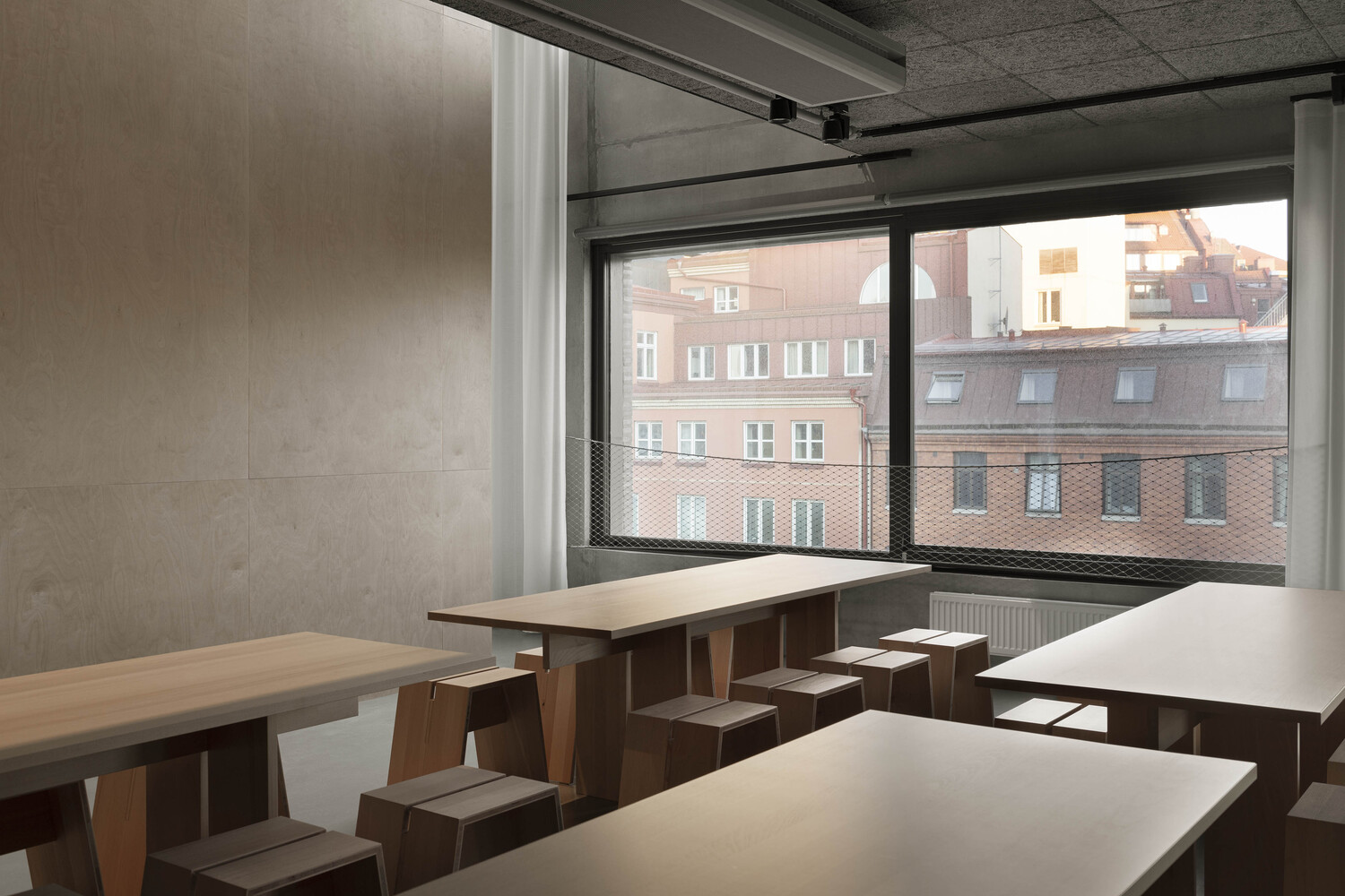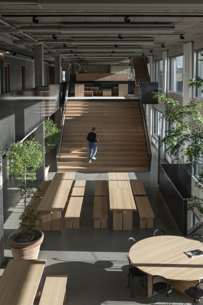 Echoing the minimalist philosophy of Donald Judd, the furniture in Merkurhuset Offices is a testament to geometric precision and functional beauty. The choice of beechwood for seating, tables, and interior fixtures underscores a commitment to durability, sustainability, and aesthetic appeal, marking a significant contribution to innovative office design.