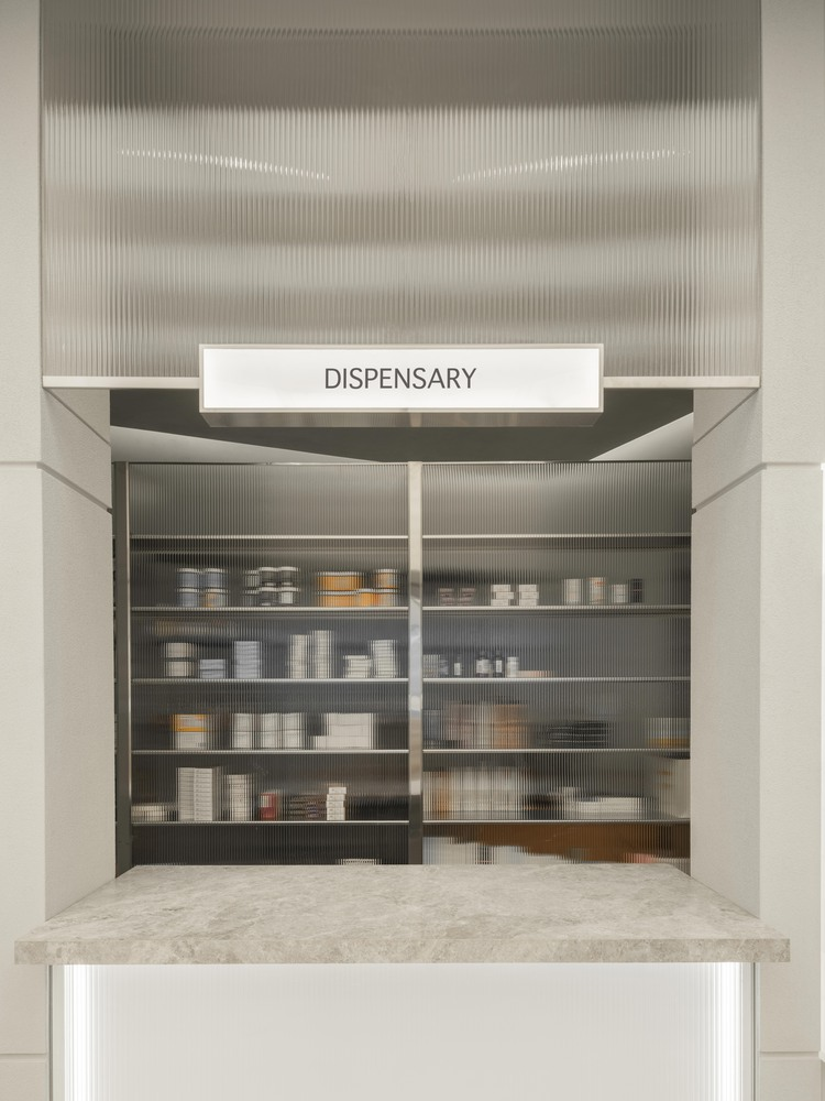The seamless integration of design elements, from the shelving to the lighting and material choices, ensures that the pharmacy offers a cohesive and immersive experience. The design successfully combines clean and modern details with a futuristic touch, embodying innovation in every aspect.
