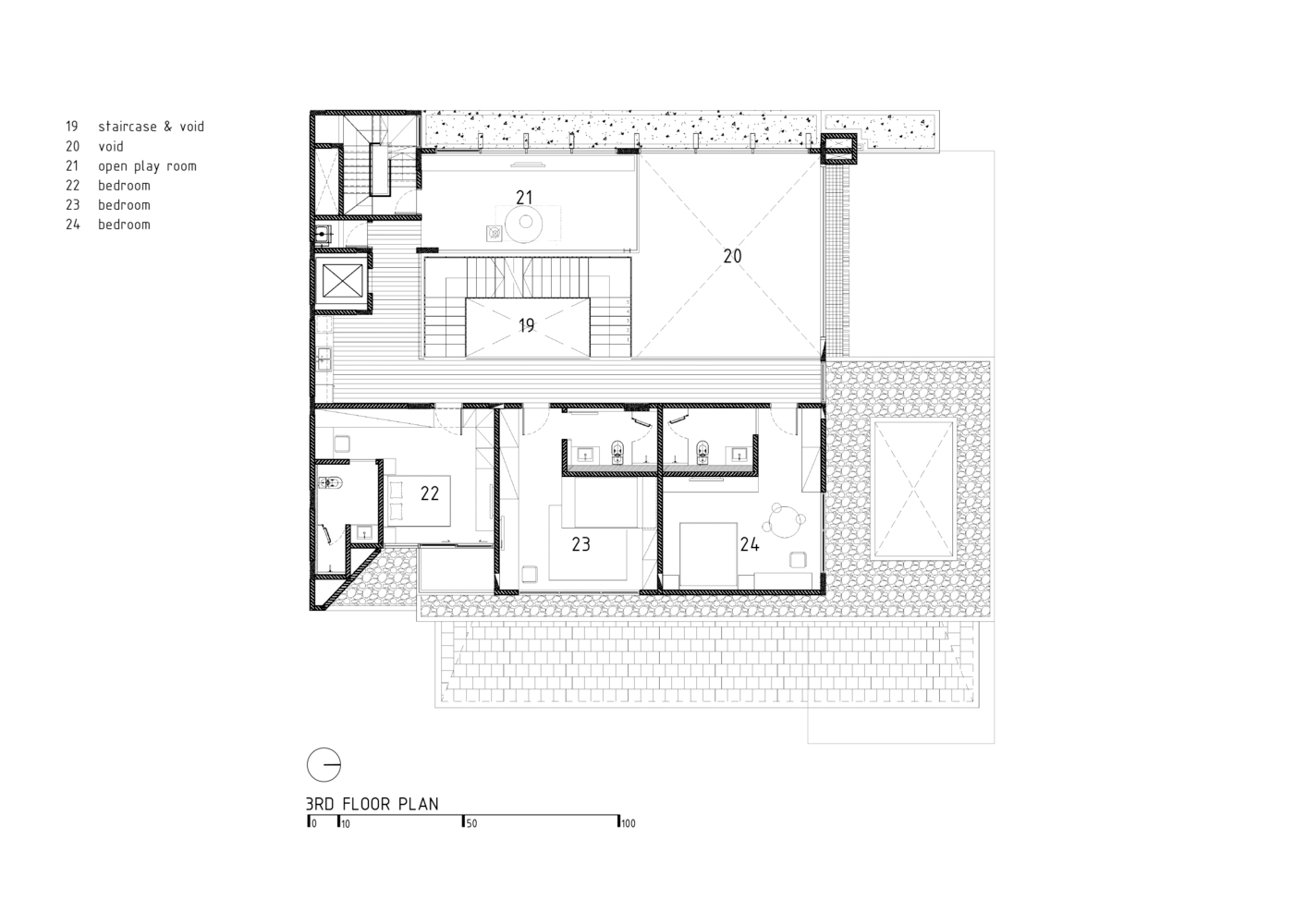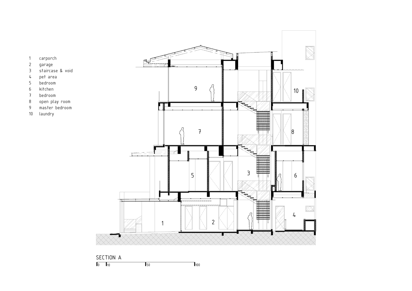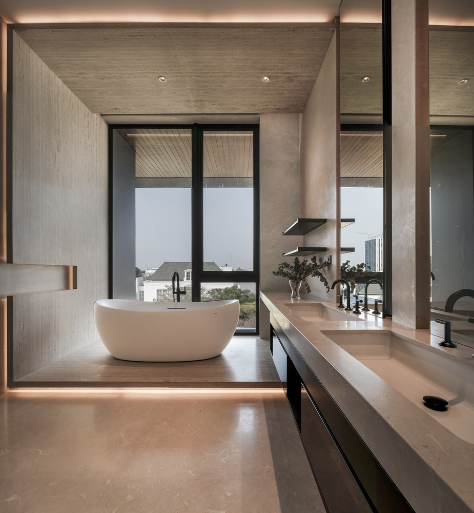 At the heart of R+J House is a grand atrium, inspired by traditional atrium spaces known for emphasizing openness and light. This central space not only enhances the home's sense of openness but also serves as a private sanctuary where art and architecture converge. The atrium's design, featuring a central staircase, allows for a 360-degree exploration of the space, promoting a unique interaction between the occupants and their surroundings.