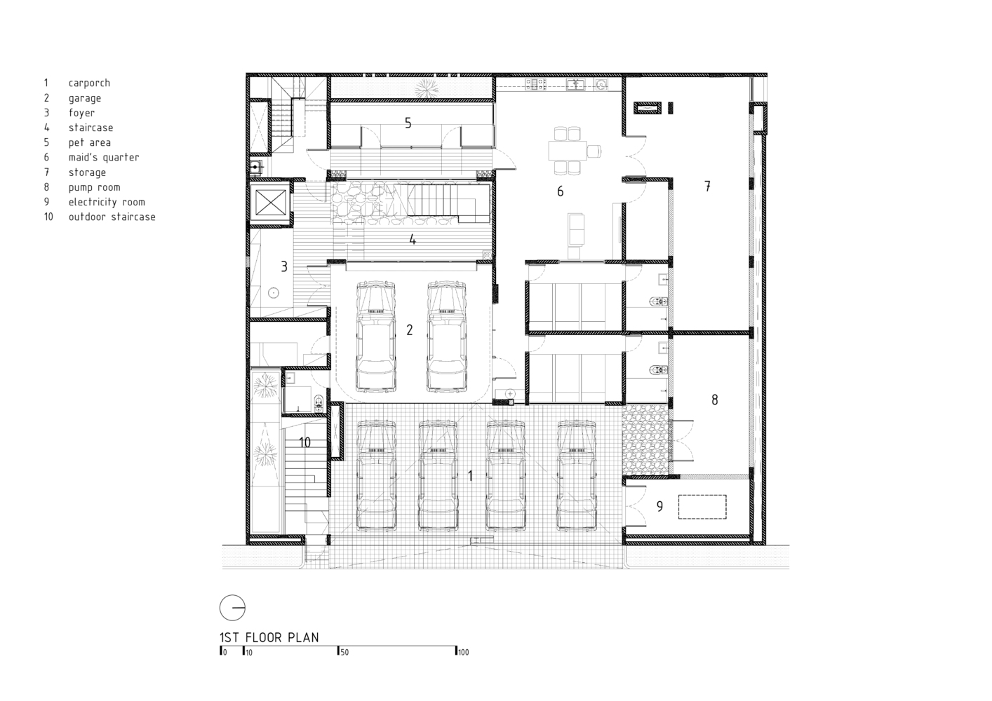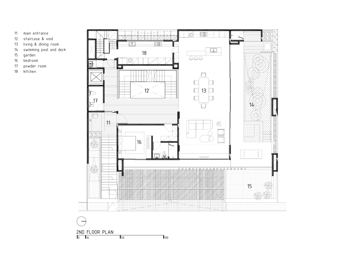 One of the most striking features of R+J House is its ability to blend indoor and outdoor environments seamlessly. The architects achieved this through strategic openings and the use of glass, which extends the living space to the outdoors. The swimming pool area, visible from the house's central atrium, further exemplifies this concept, offering views of the surrounding greenery and creating a serene backdrop for the art pieces displayed throughout the home.
