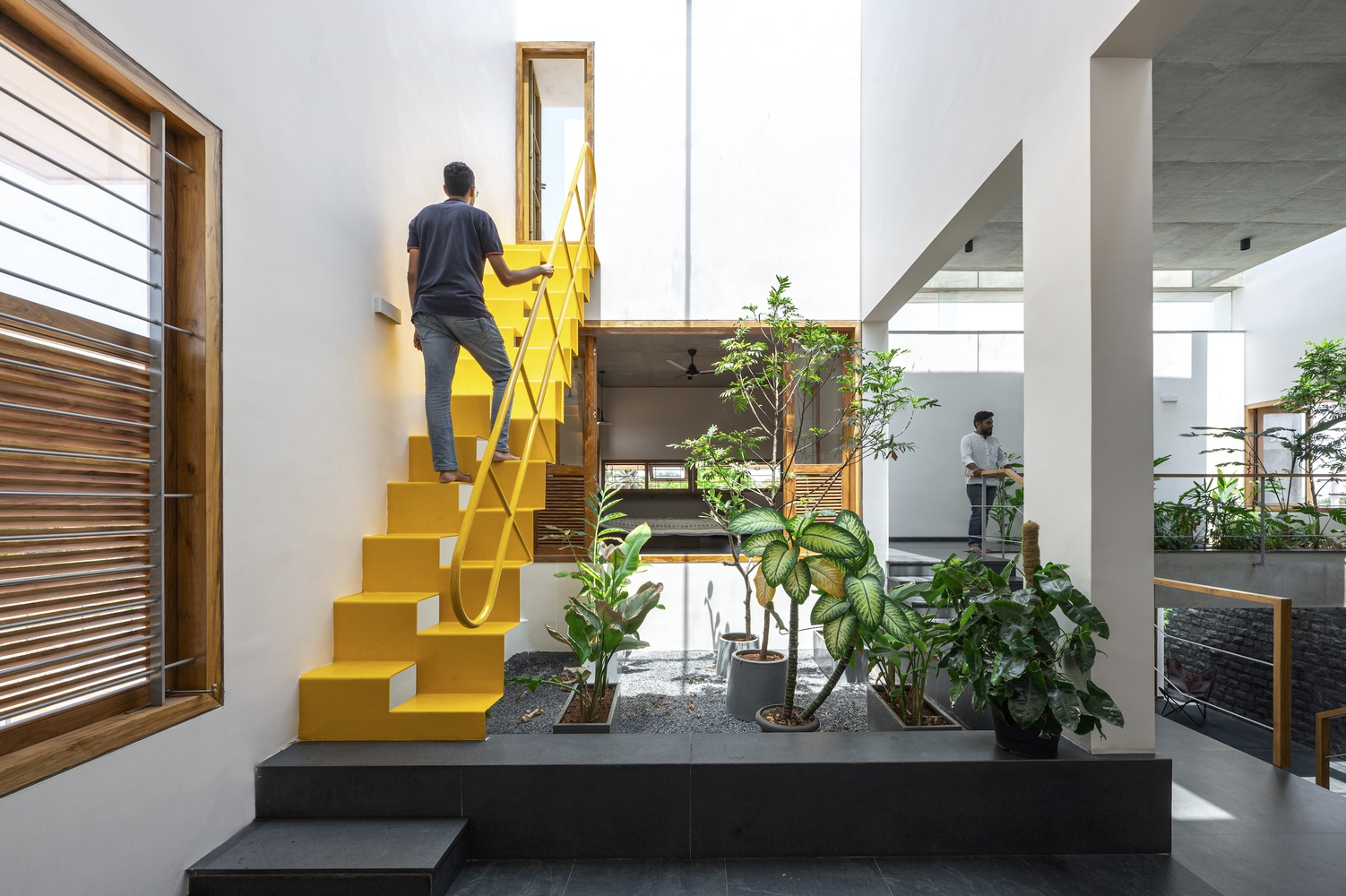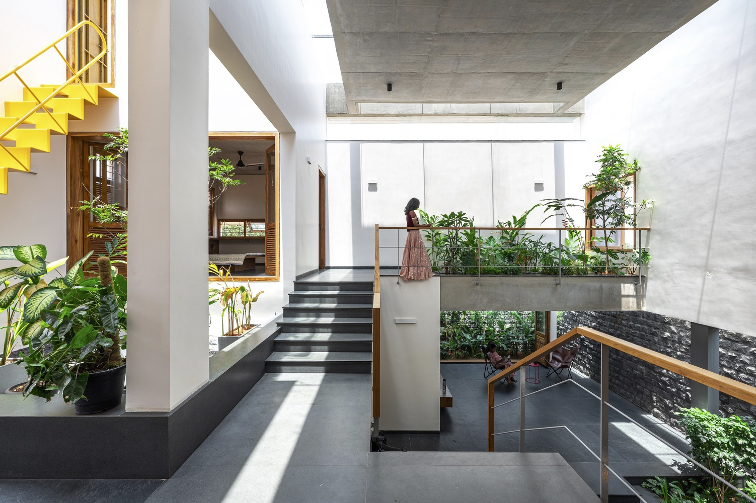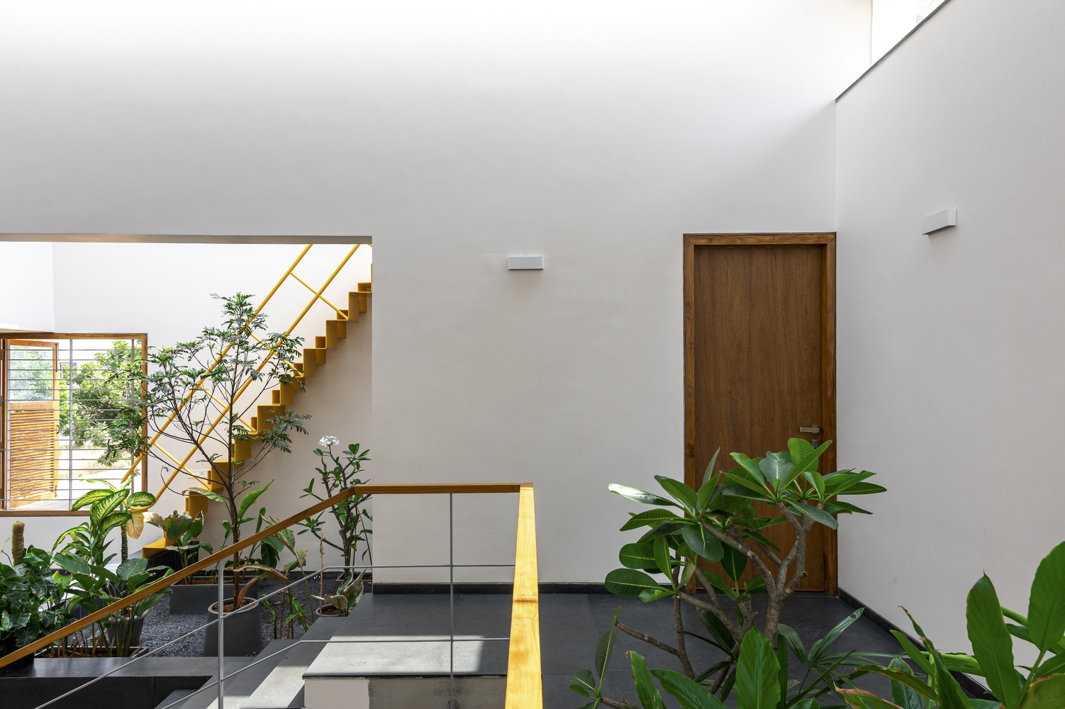 Drawing inspiration from the traditional "katte" found in the old town of Tiptur—verandas that foster community interactions—the residence incorporates staggered, interconnected courtyards that serve as semi-public gathering zones. These spaces are thoughtfully designed to transition smoothly from indoor areas to lush outdoor gardens, enhancing the communal feel while providing seclusion.