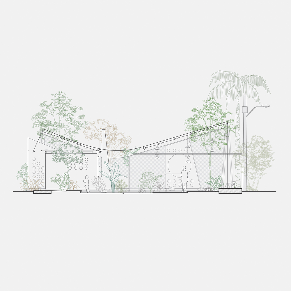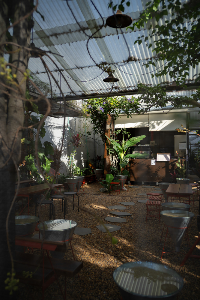 The café’s program seamlessly coexists with the existing garden, blurring the boundaries between domesticity and public space. The garden, once private, now serves both the house and the café in a shared capacity. This dual function creates a spatial fluidity where greenery acts not as decoration but as an active agent in the design.