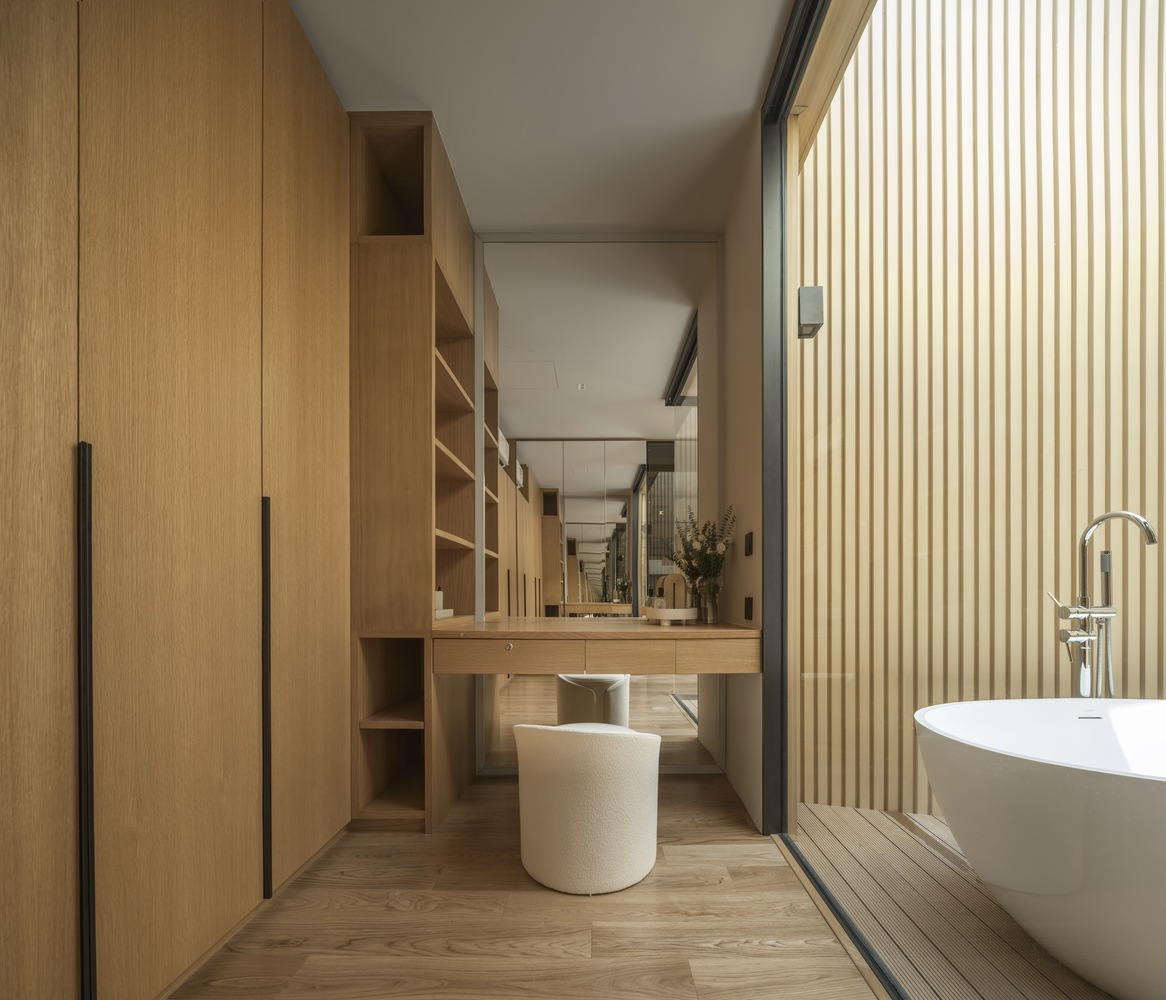 Every area within the Warmblack House is designed with functionality and style in mind. From the kitchen’s white-cream-colored tiles that amplify light and space to the dining area’s detailed marble, each choice is both aesthetic and practical. The furniture is versatile, catering to both family gatherings and social events without sacrificing comfort or style.