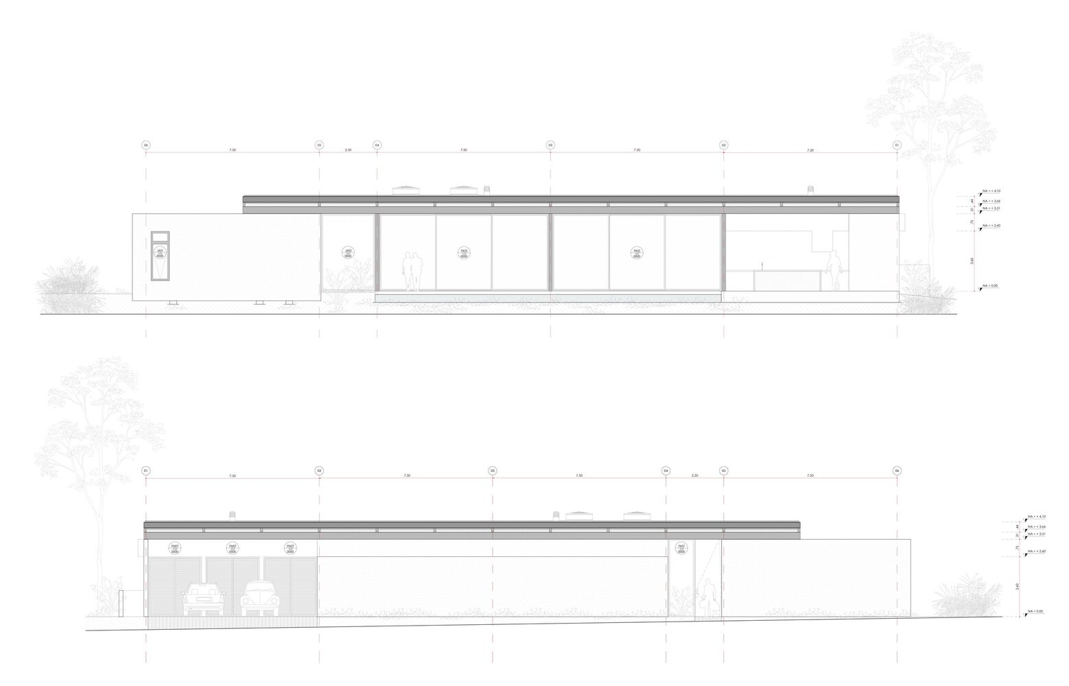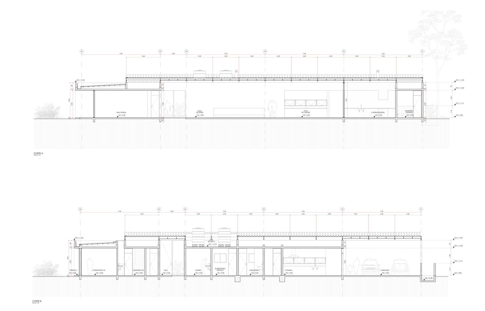 Embracing modern Brazilian architecture principles, the house incorporates a metal structure combined with masonry walls to optimize construction efficiency and sustainability. The choice of materials reflects a commitment to low-cost, high-quality construction that is both aesthetically pleasing and environmentally responsible.
