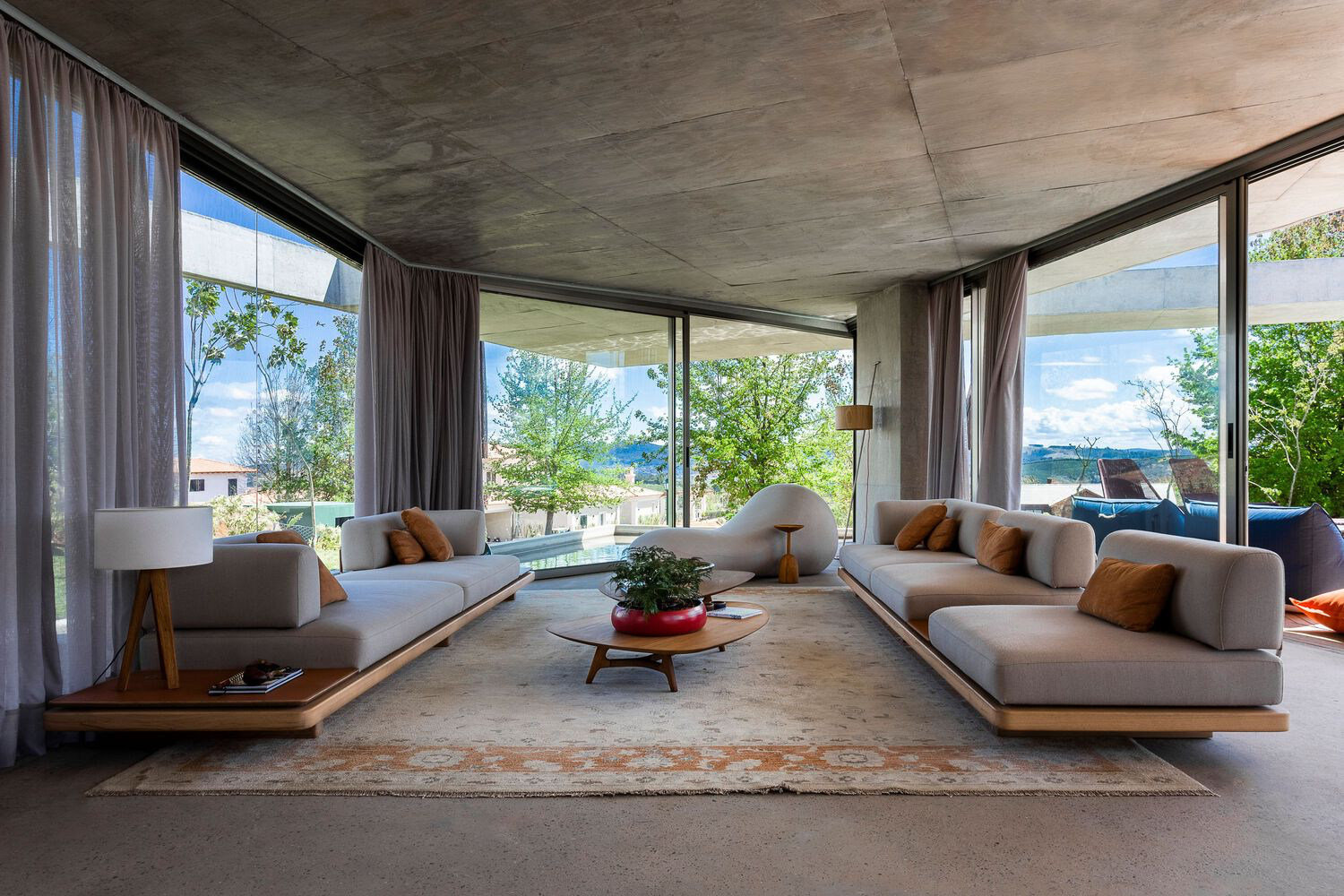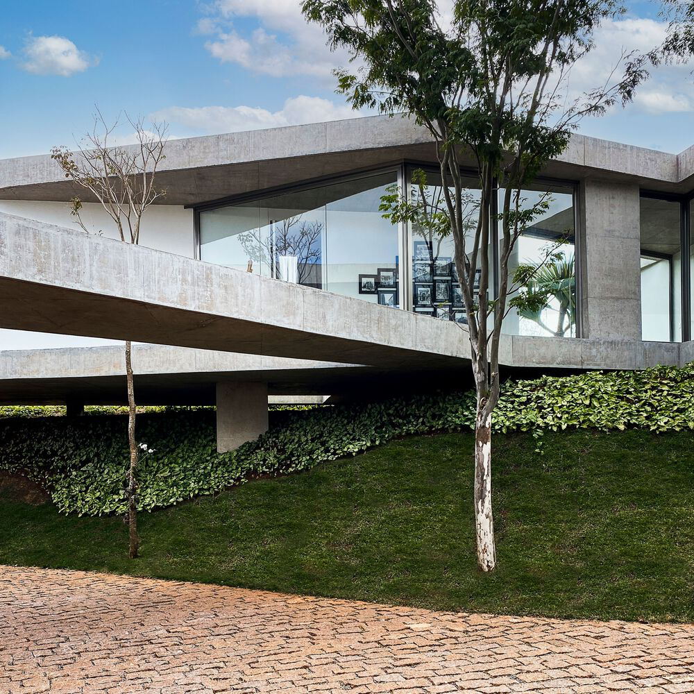 Designed for a couple and their teenage son, the Subtraction House is a masterpiece of modern concrete architecture in Brazil. Its location on a square lot maximizes the use of the slightly sloping topography to offer expansive views. FGMF Architects’ dedication to preserving the visual integrity of the surroundings led to the groundbreaking decision to excavate the central area of the site. This innovative approach created a semi-underground level illuminated by a courtyard, housing a garage and garden at street level, thus elevating the residence above the ground and minimizing its environmental footprint.