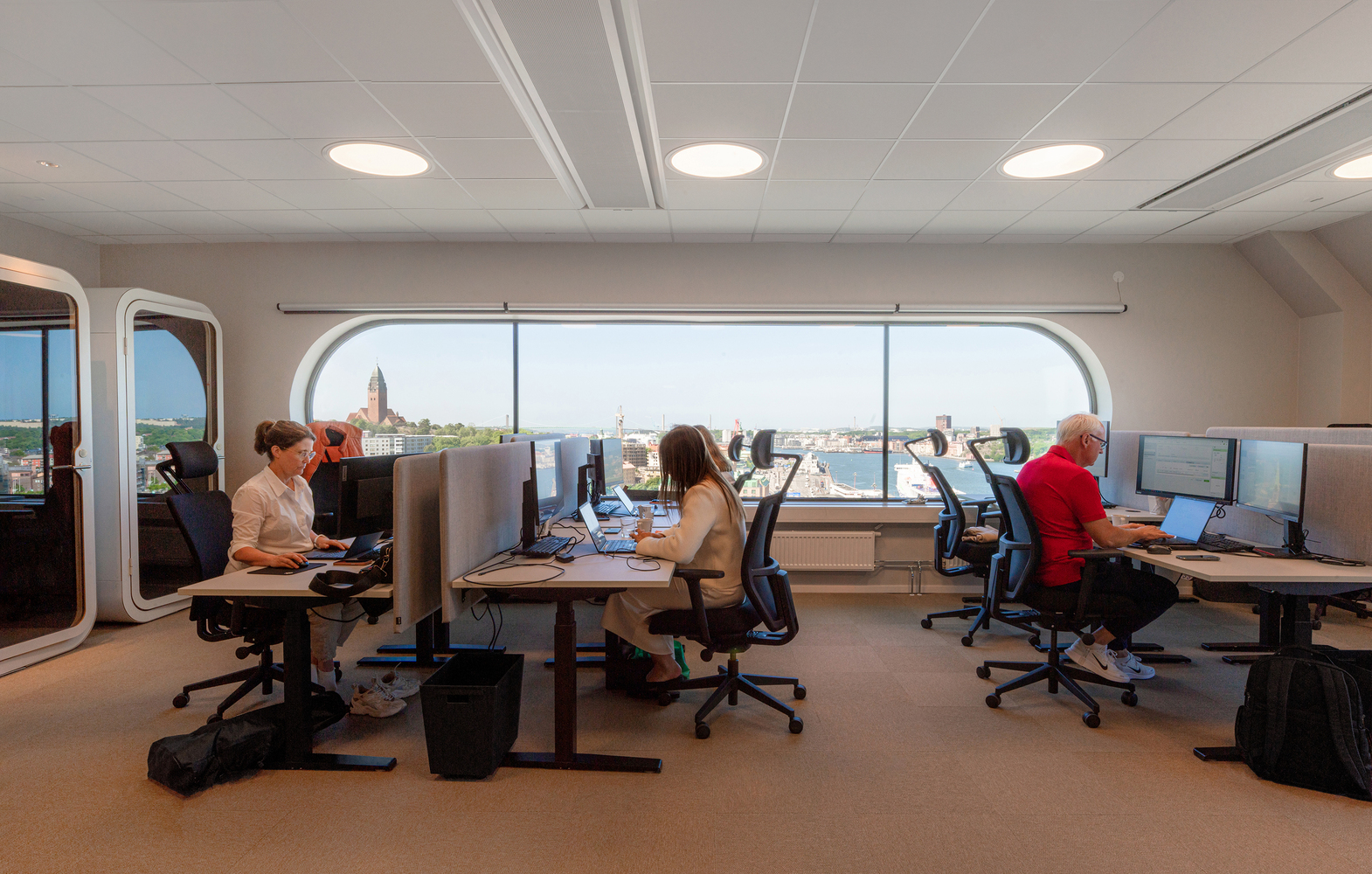 The building's design is not only an aesthetic achievement but also a response to the harsh Gothenburg weather. The rounded facade ensures that rain, wind, and debris are directed away from the building, keeping the structure clean and minimizing the impact of the local climate. The architecture of modern office buildings often considers environmental factors like weather, and Stuveriet is an excellent example of this.